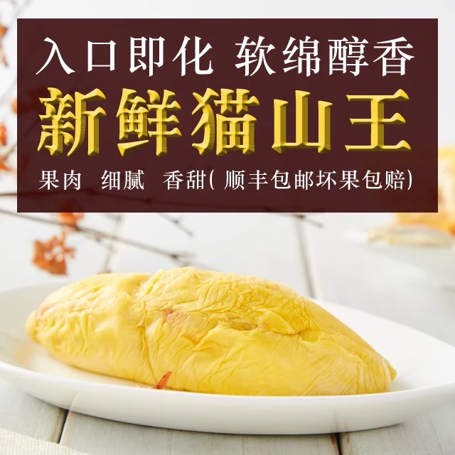 猫山王口味上天然带有苦味,且苦味程度视果子的树龄和本身的成熟状态有关,个别老树龄果苦味较浓,都属于正常情况,苦味回甘,味道浓烈。