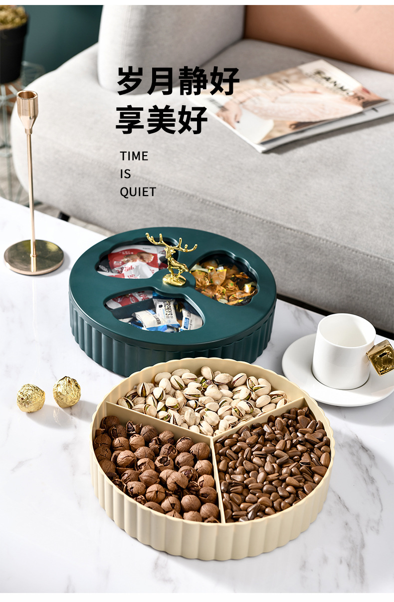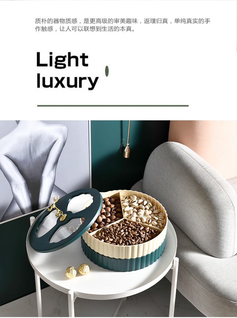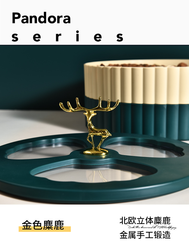 【情调生活 多功能省空间】北欧轻奢麋鹿果盘 家用客厅分隔带盖干果盘 创意现代多层糖果零食盒
