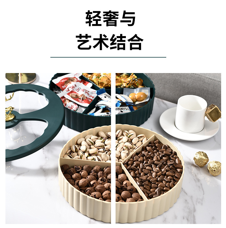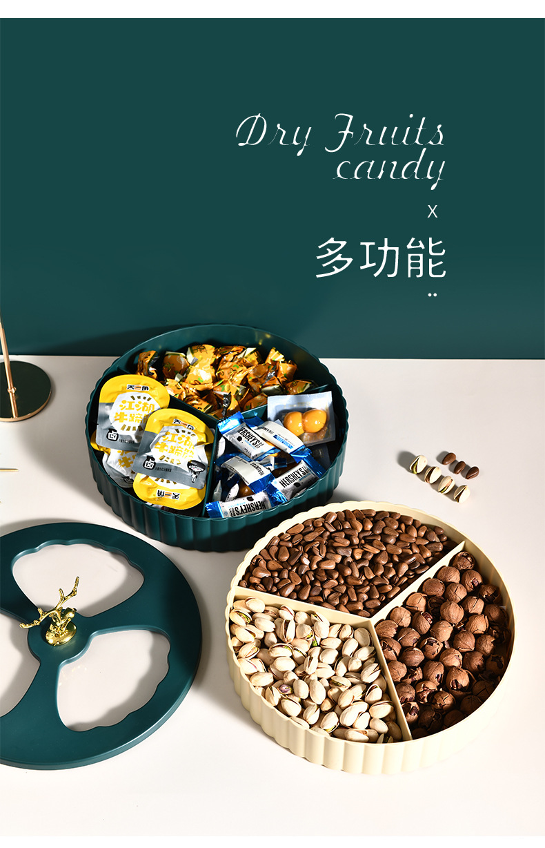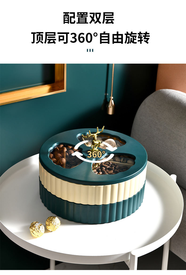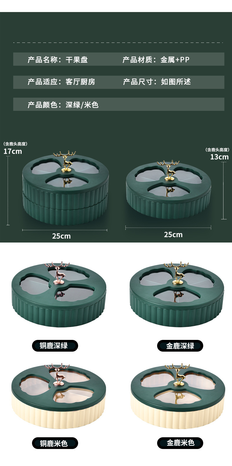 【情调生活 多功能省空间】北欧轻奢麋鹿果盘 家用客厅分隔带盖干果盘 创意现代多层糖果零食盒