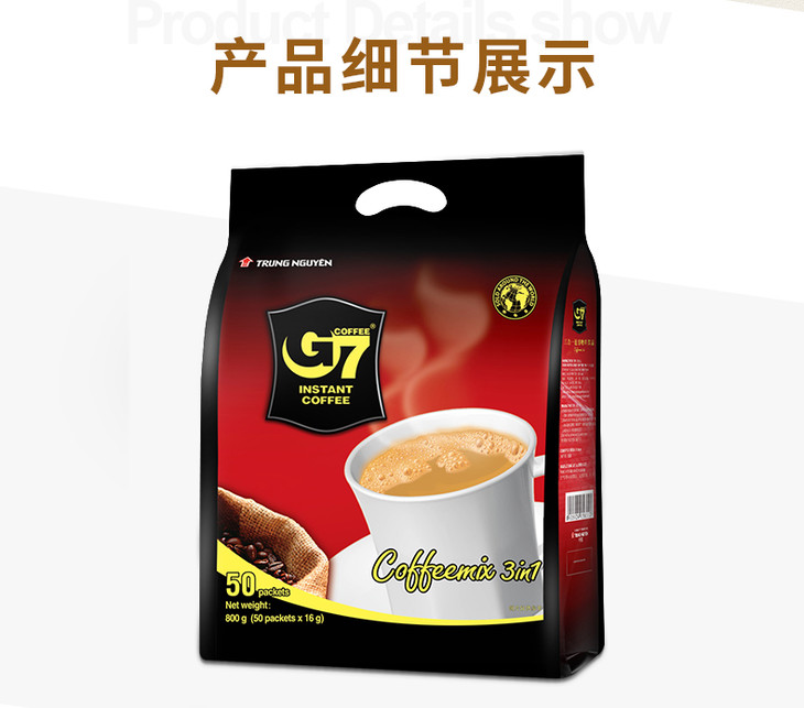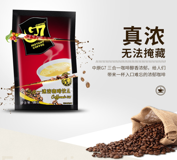 【整包50条】G7三合一速溶咖啡(小袋)整包(16g*50袋)