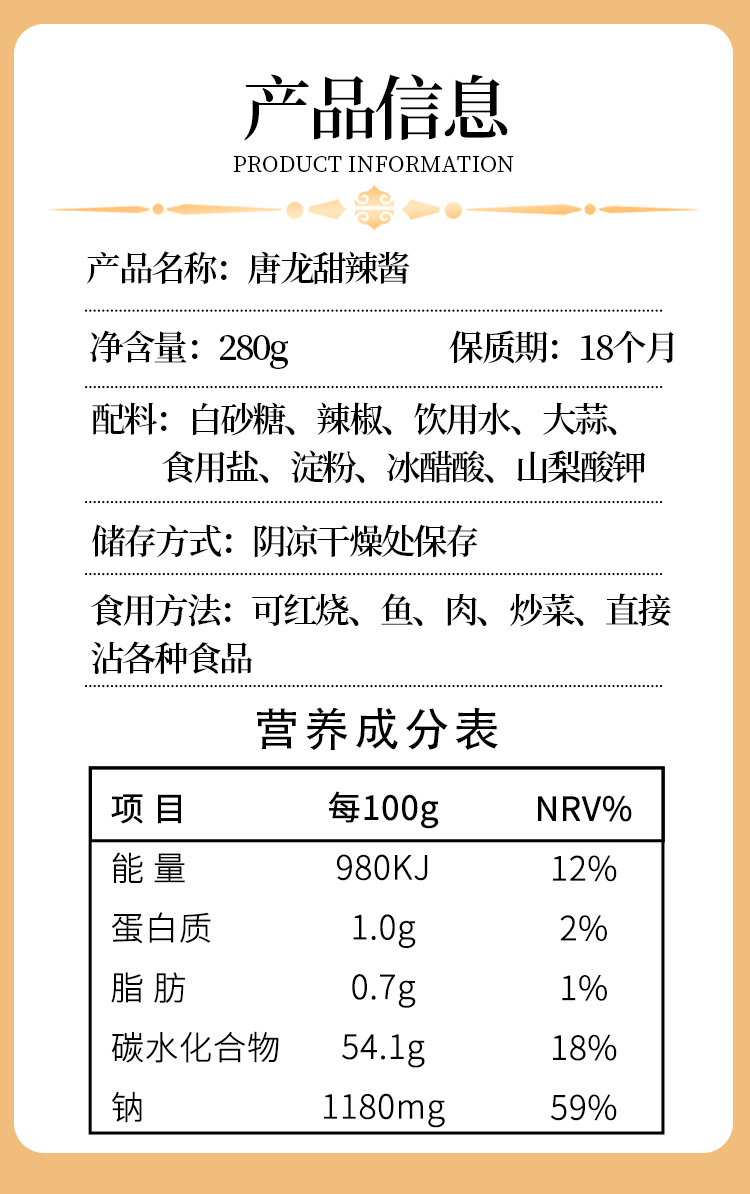 唐龙甜辣酱辣椒酱罐装