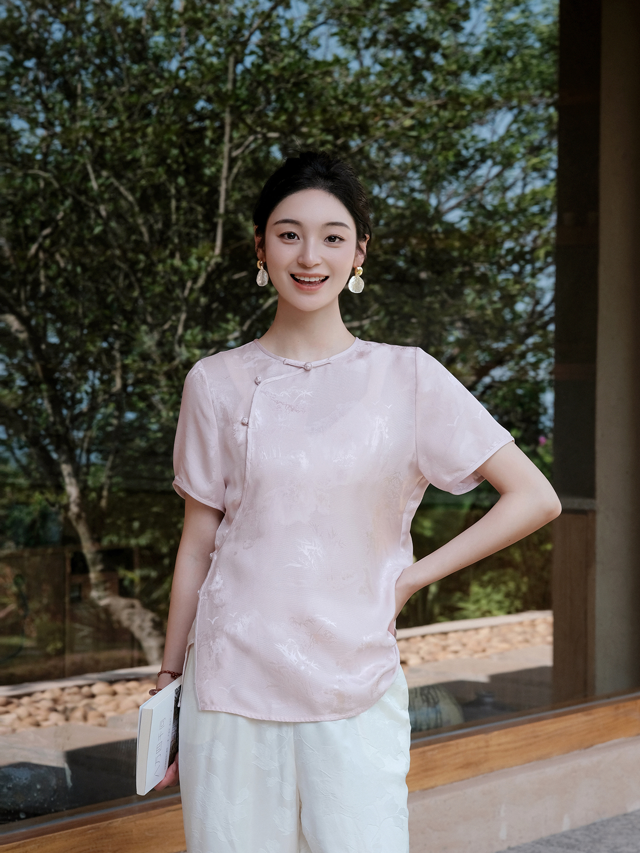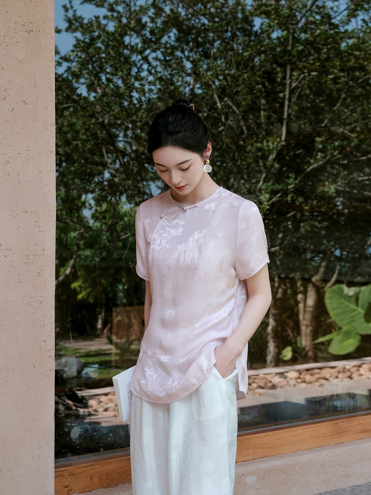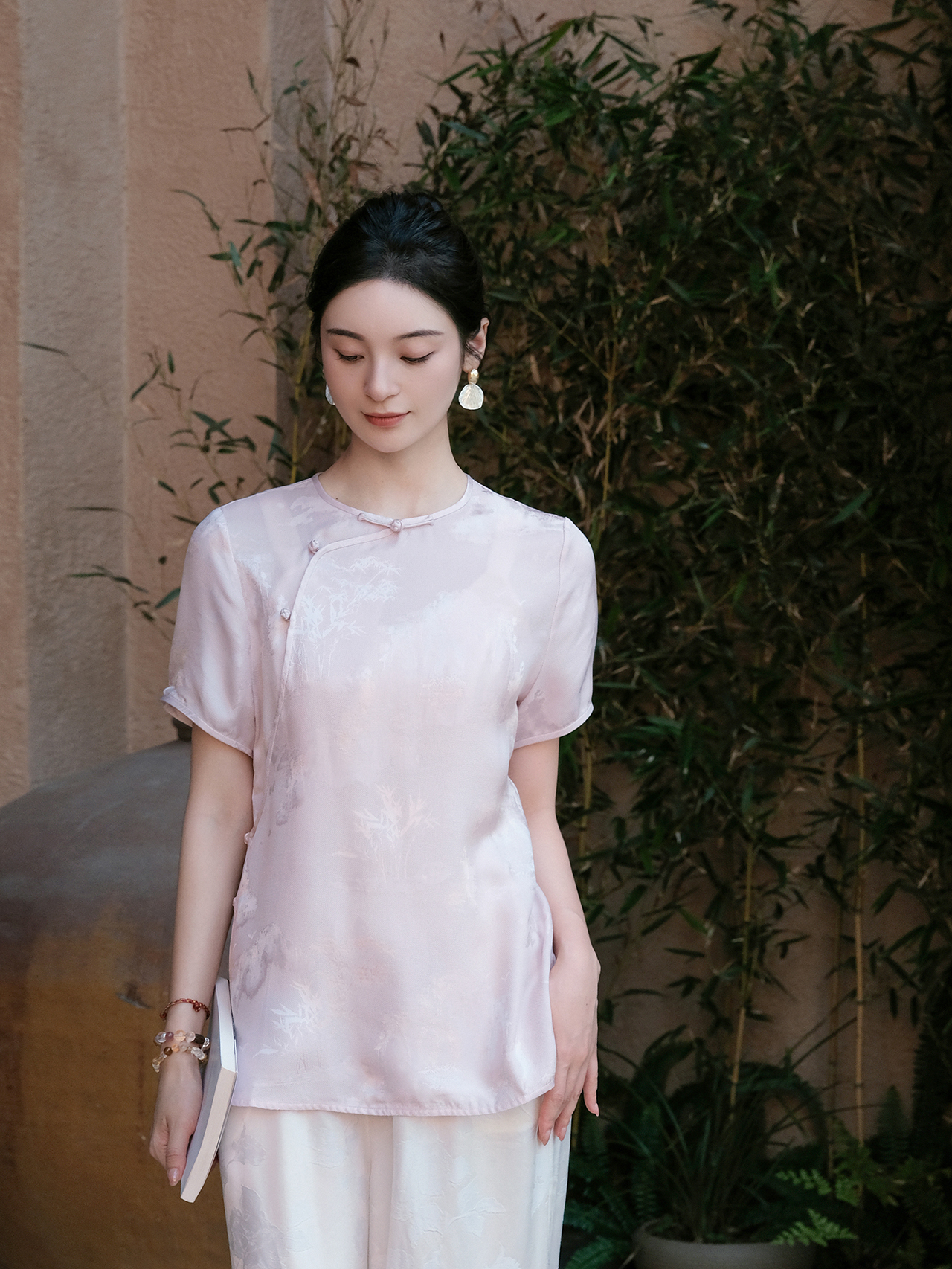 盛唐婧| 新中式圆领斜襟短袖正肩上衣