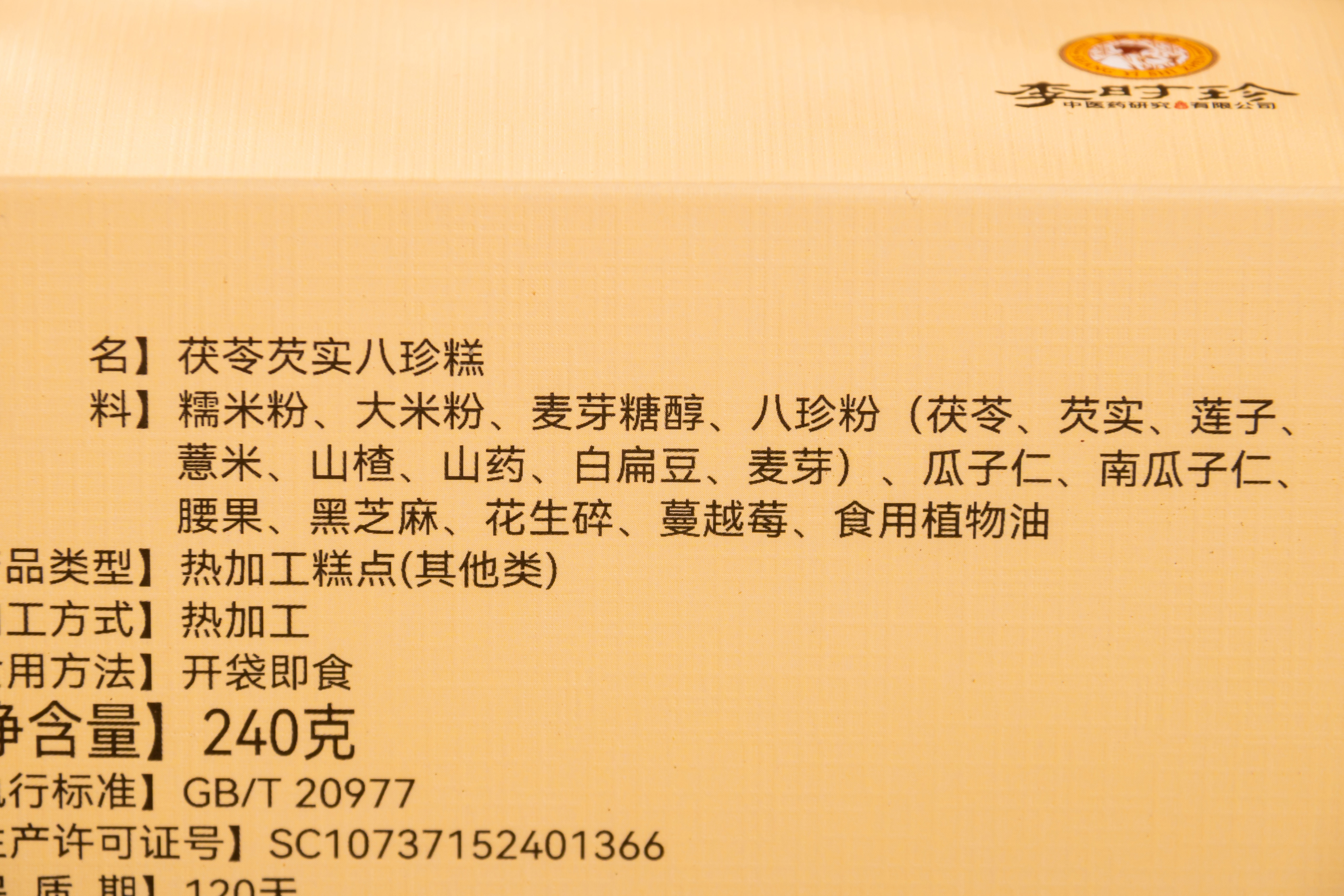 【东方甄选直播推荐 健脾养胃软糯香甜】李时珍 茯苓芡实八珍糕 8大药食同源食材+6种美味坚果 无添加 小孩也爱吃 240g
