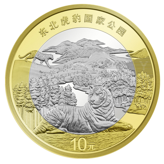 3、东北虎豹国家公园纪念币,该纪念币面额为10元,直径为27毫米,材质为双色铜合金,发行数量为6000万枚。