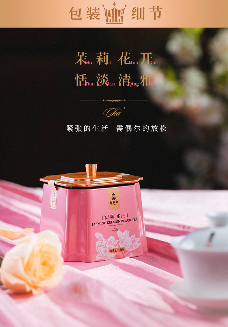 谢裕大 茉莉祁门红茶特级茉莉红茶 60g/罐