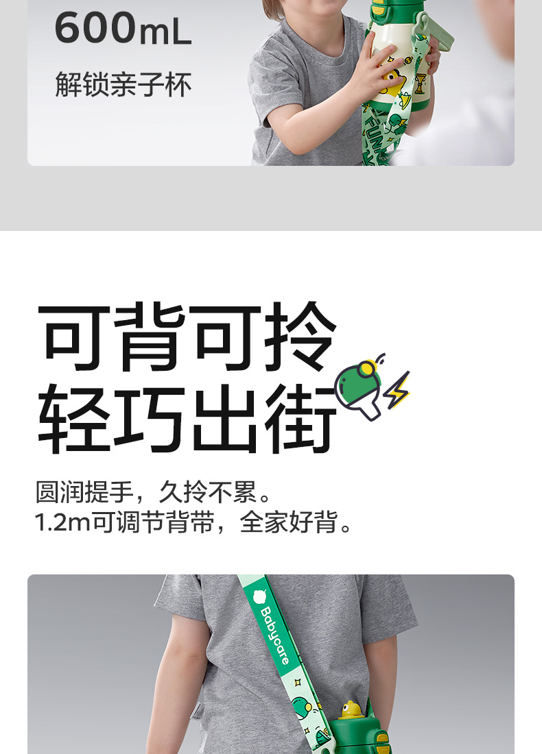 babycare 600ml中大童吨吨三饮保温杯BC2310541(激光绿/引力洋红)