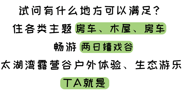 自驾游 | 太湖湾露营谷&太湖湾嬉戏谷2天1晚度假游 特色房车营地、木屋别墅、生态游乐园、还有嬉戏谷畅玩!