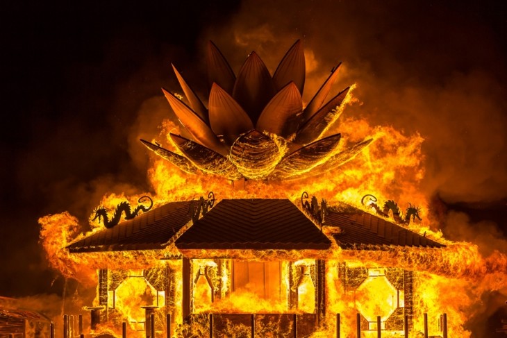 他们烧毁了一个约2.7 米的木制男子和一个小的木狗,这个想法的诞生是出于这个男人强烈的自我表达,重新站起还是自我毁灭,不得而知。