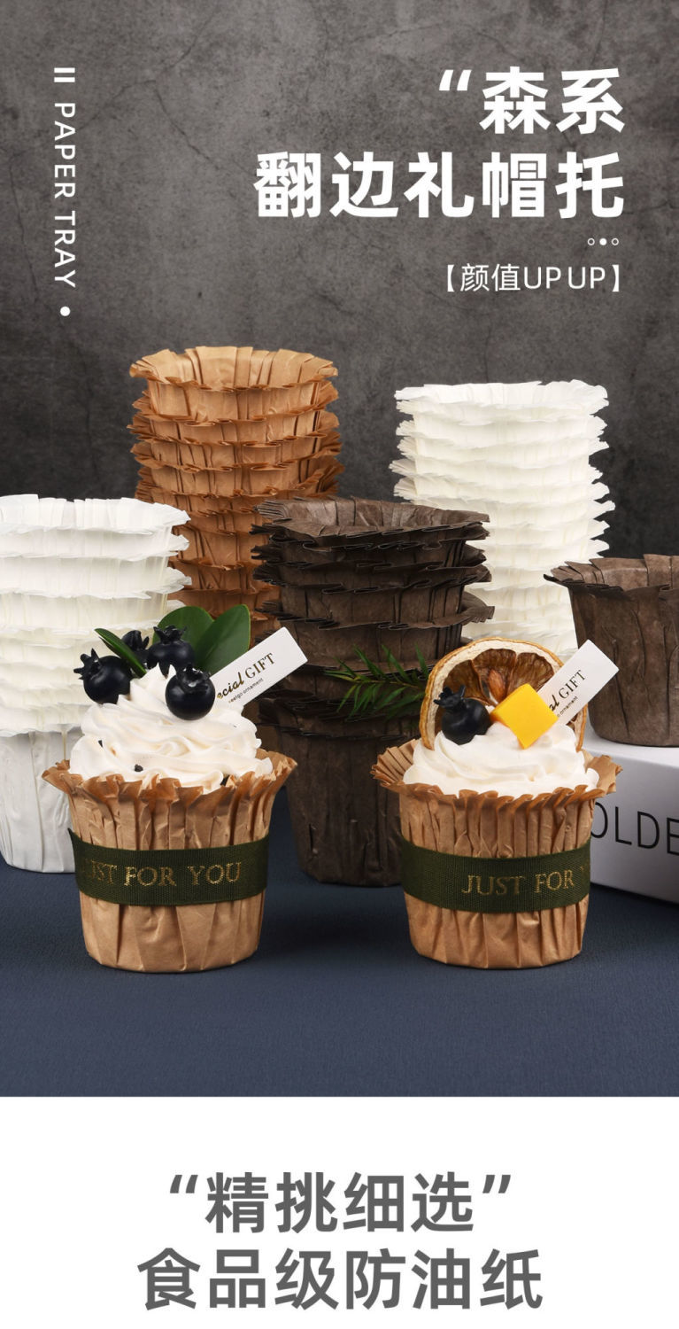 礼帽蛋糕纸杯耐高*用烘焙卷边草帽马芬纸杯蛋糕托模具杯子纸托