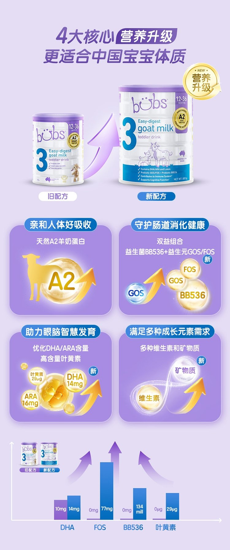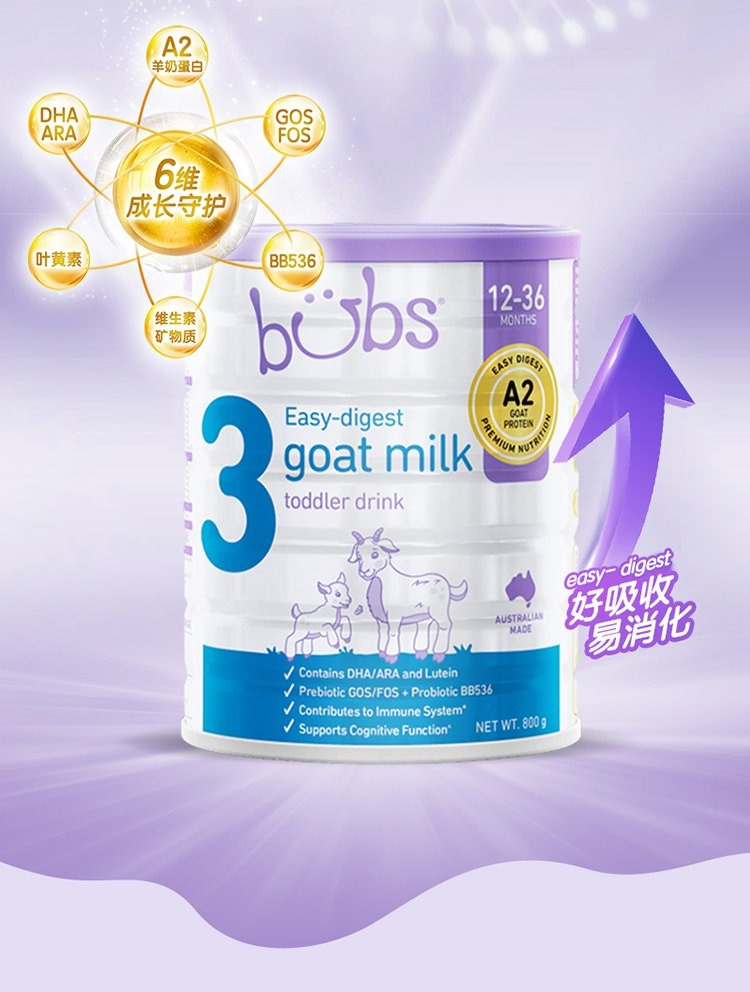 [极速送达] 澳洲 贝儿(Bubs) A2婴幼儿配方羊奶粉3段 800g 升级版