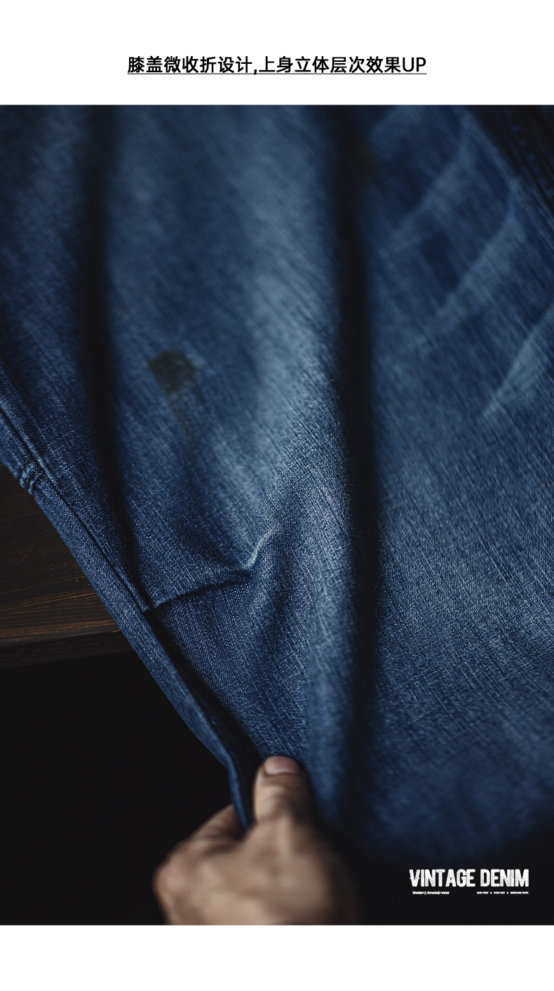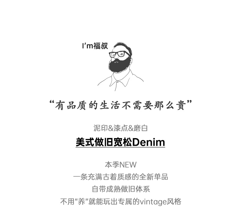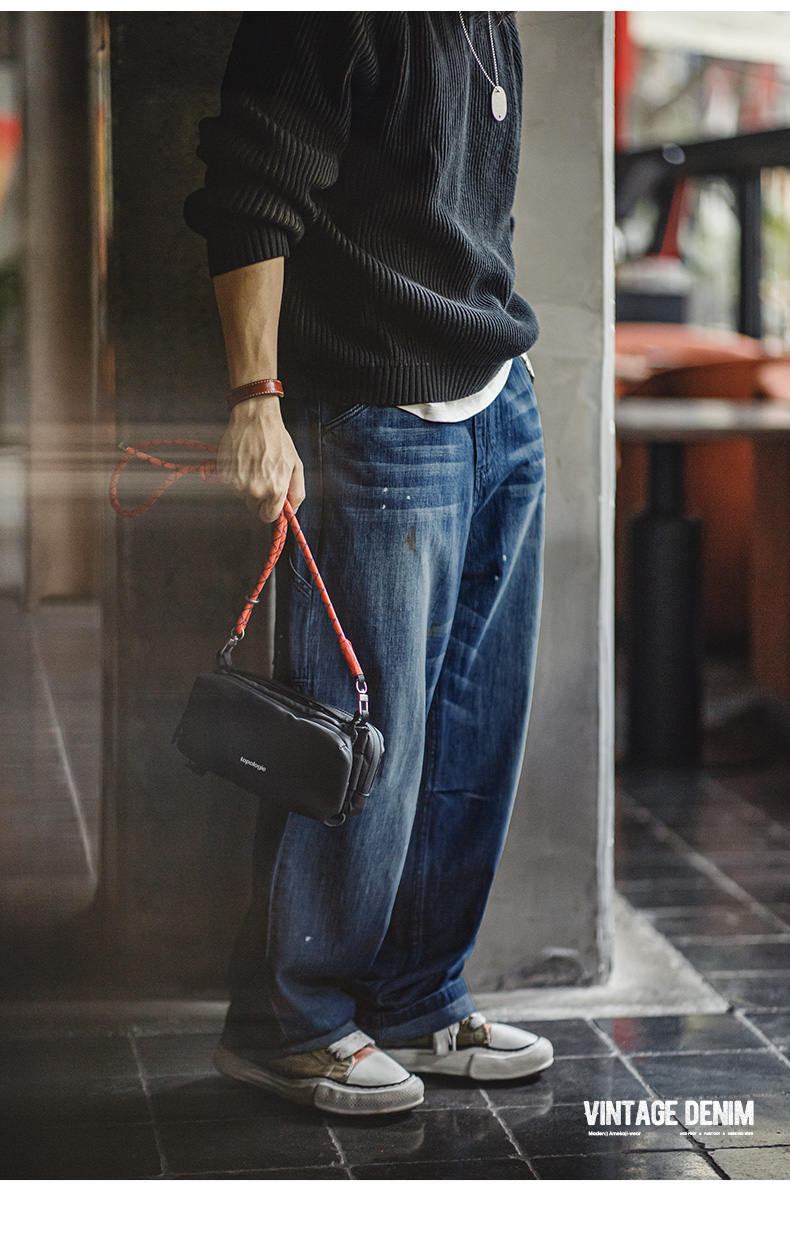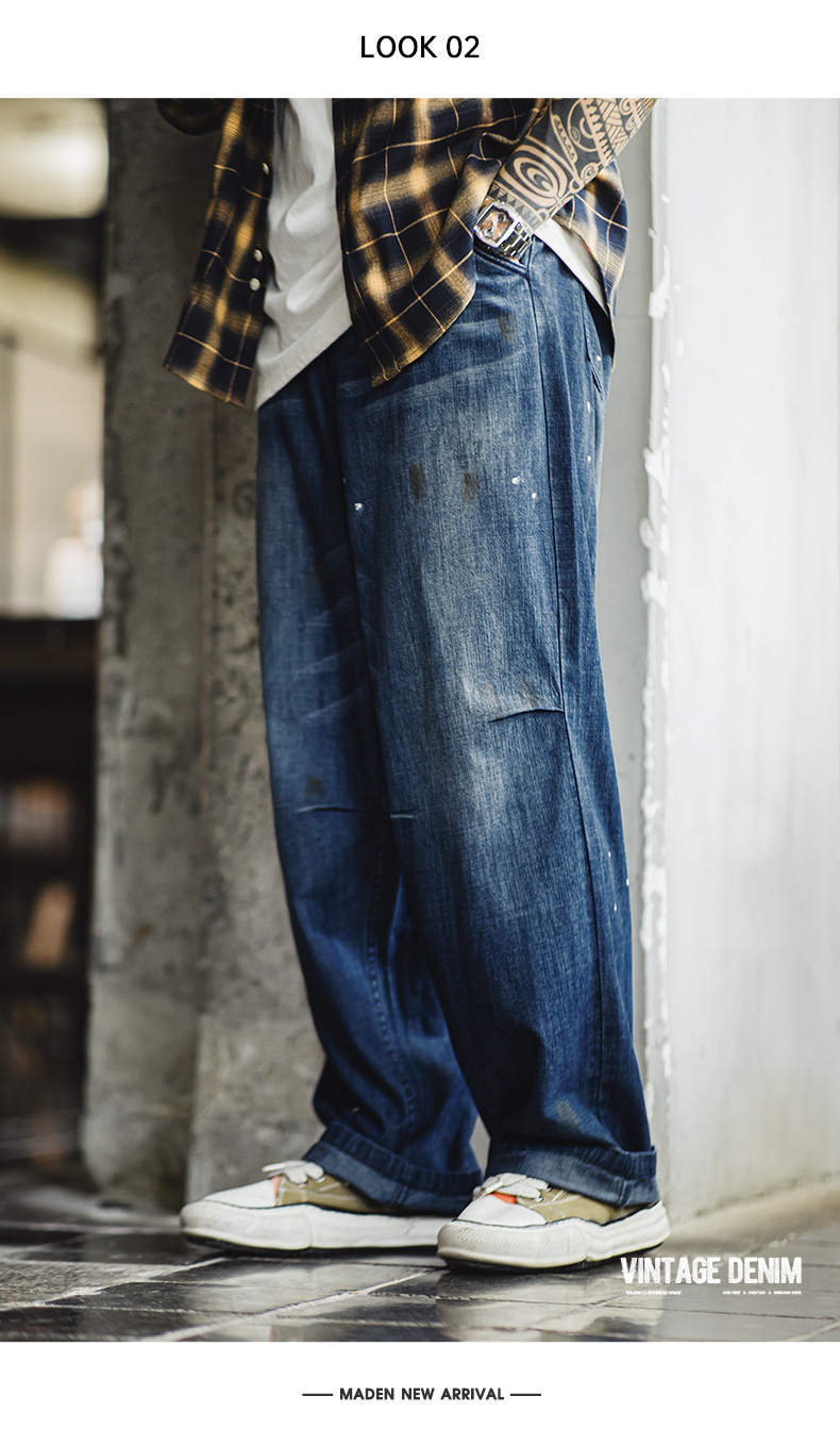 工装优选美式复古做旧磨白猫须牛仔裤宽松水洗丹宁泼墨直筒裤男秋