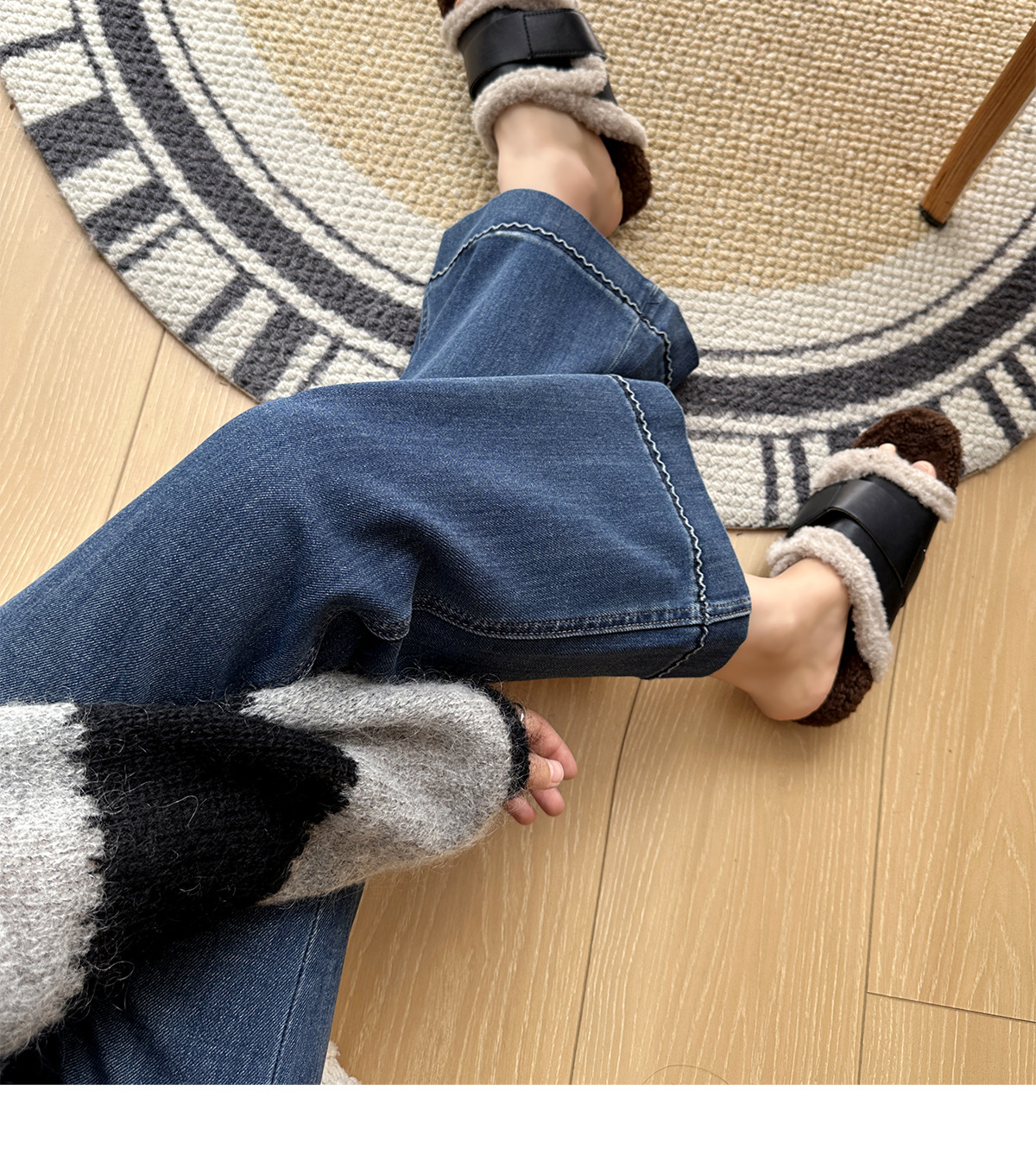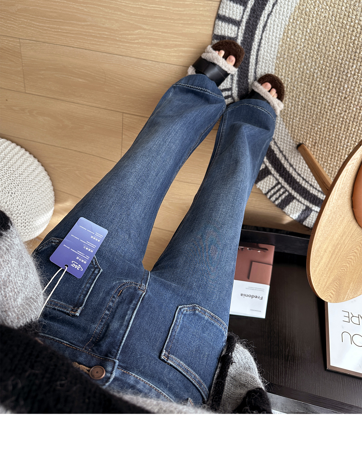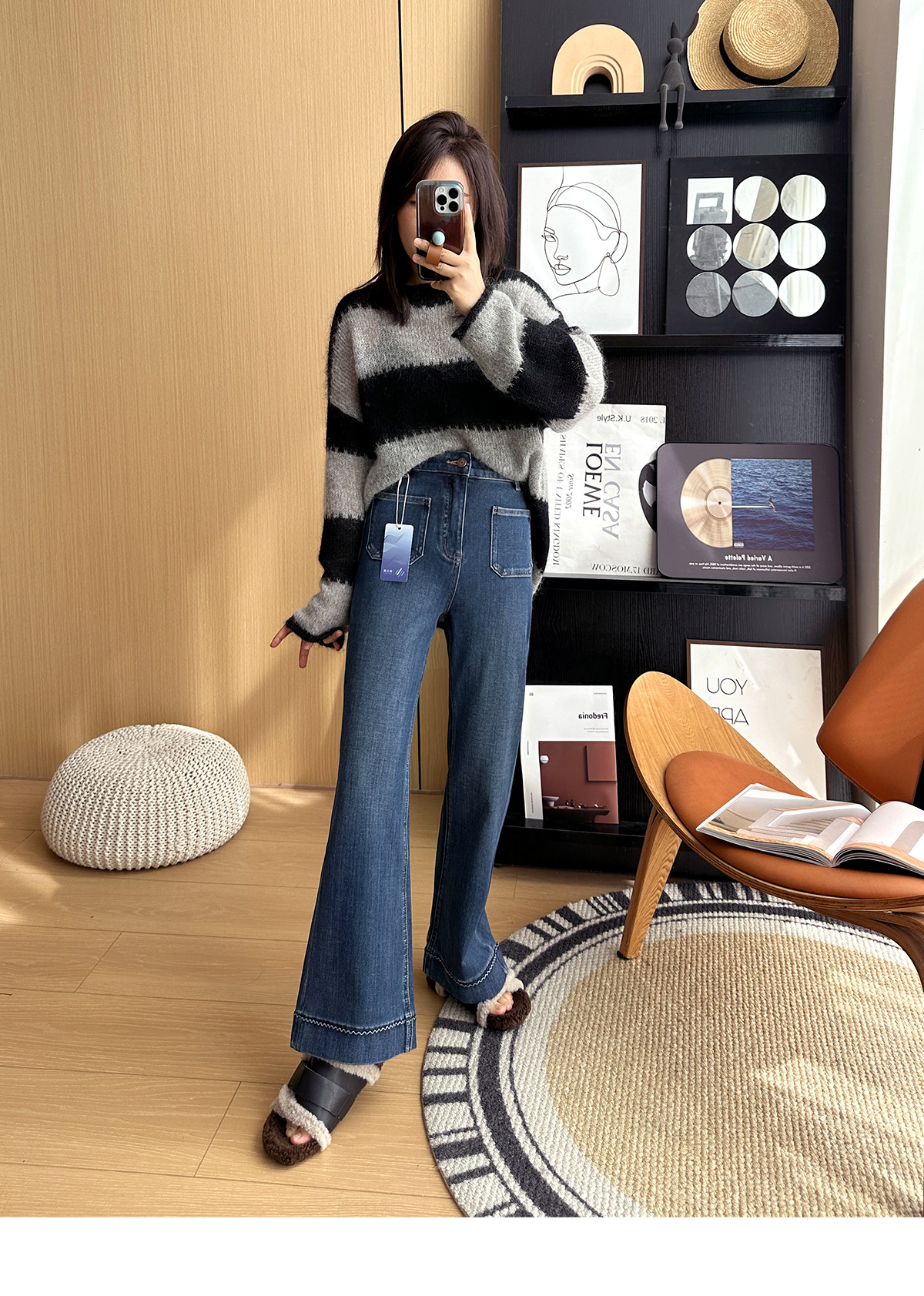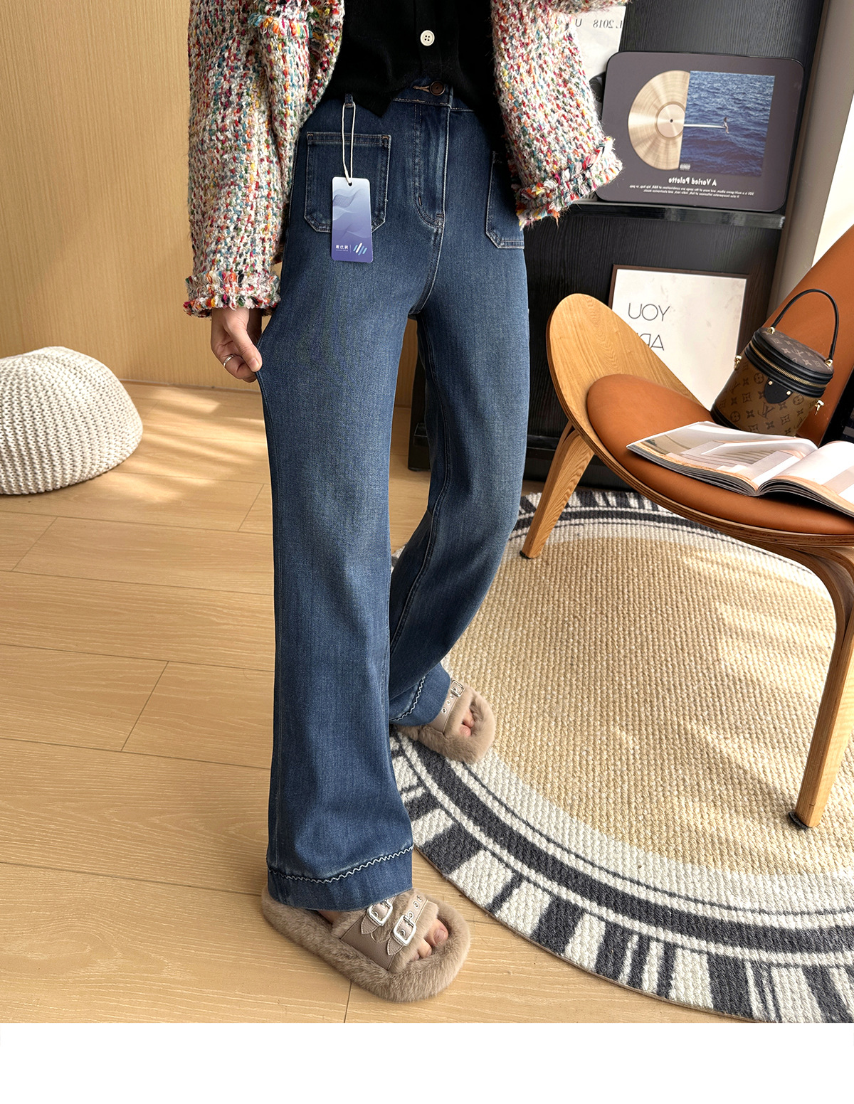 膝盖以下微微散开的裤脚恰到好处地修饰腿型