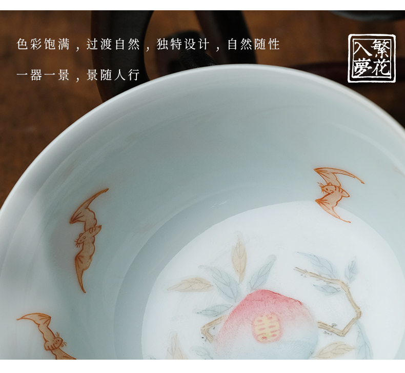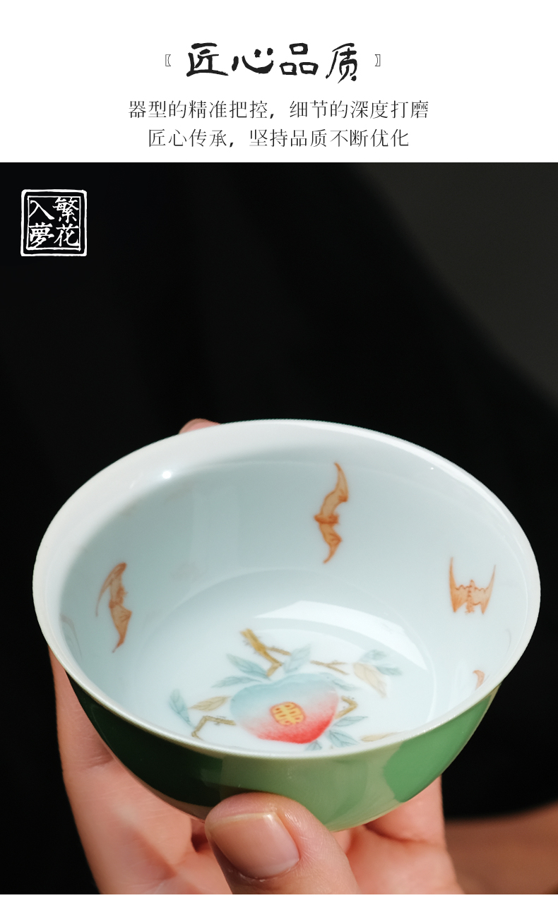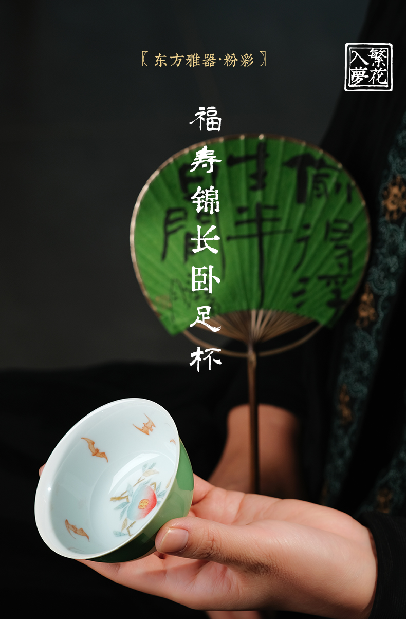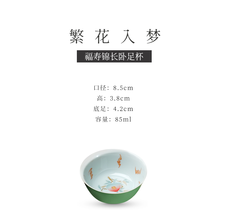 繁花入梦粉彩 福寿锦长卧足杯