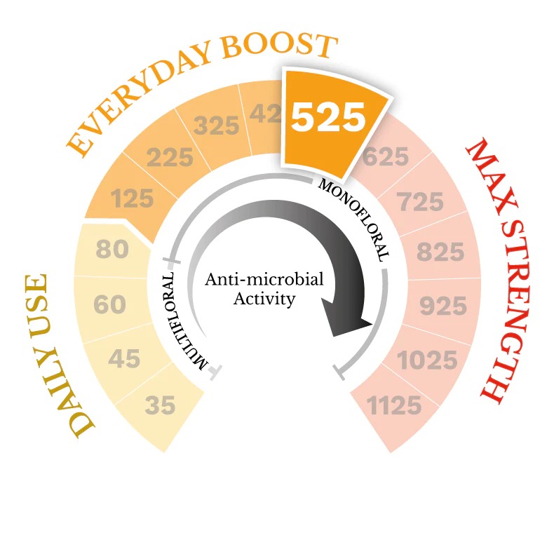 MGO数值在550以上就具有高效和多重抗菌功能,使用单花种蜂蜜,蜂蜜纯净度高,每公斤中含抗菌活性含量也高,适合帮助缓解更重的一些肠胃病症。
