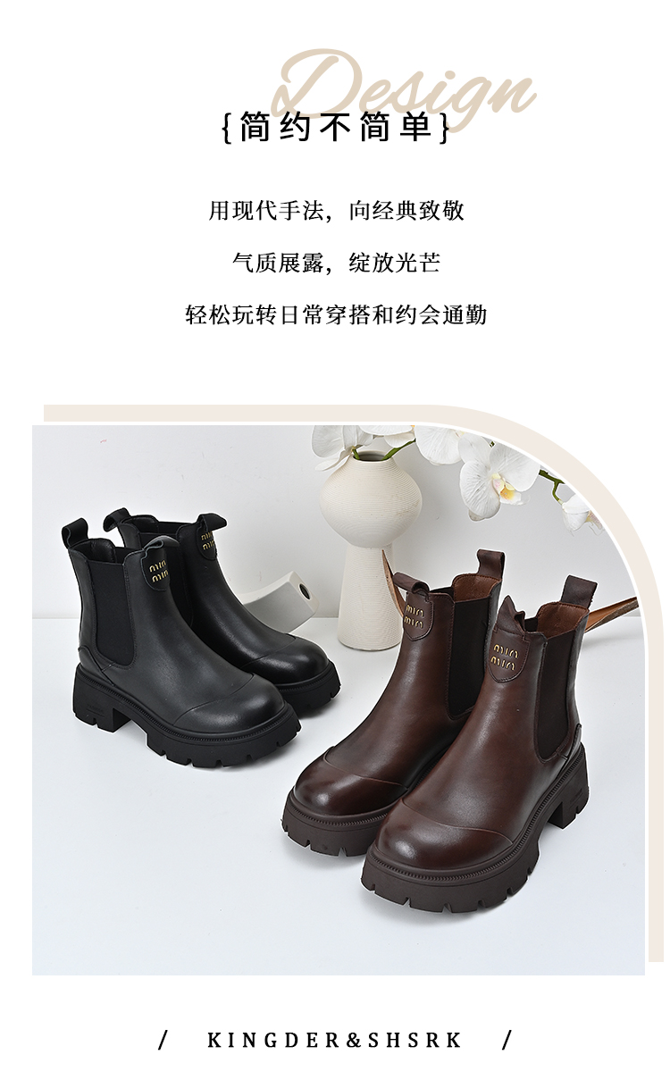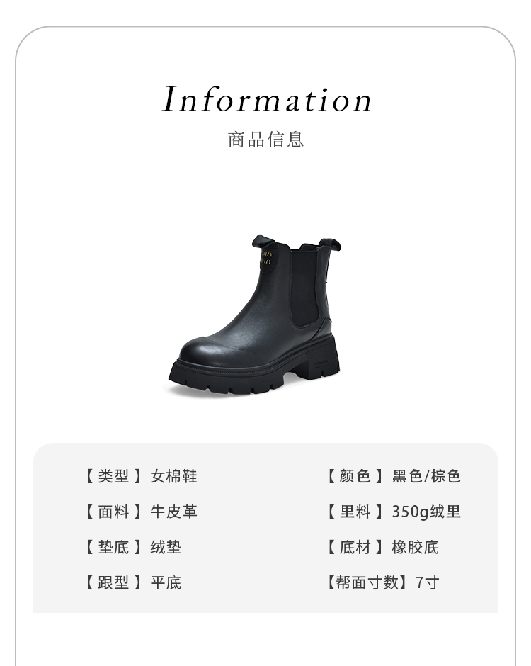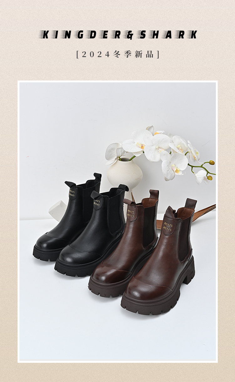 经典鲨2024冬季新款百搭圆头加绒保暖平底时尚短筒马丁靴女KW296-D58061