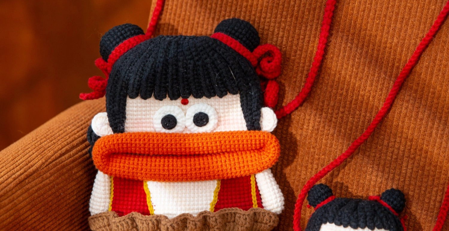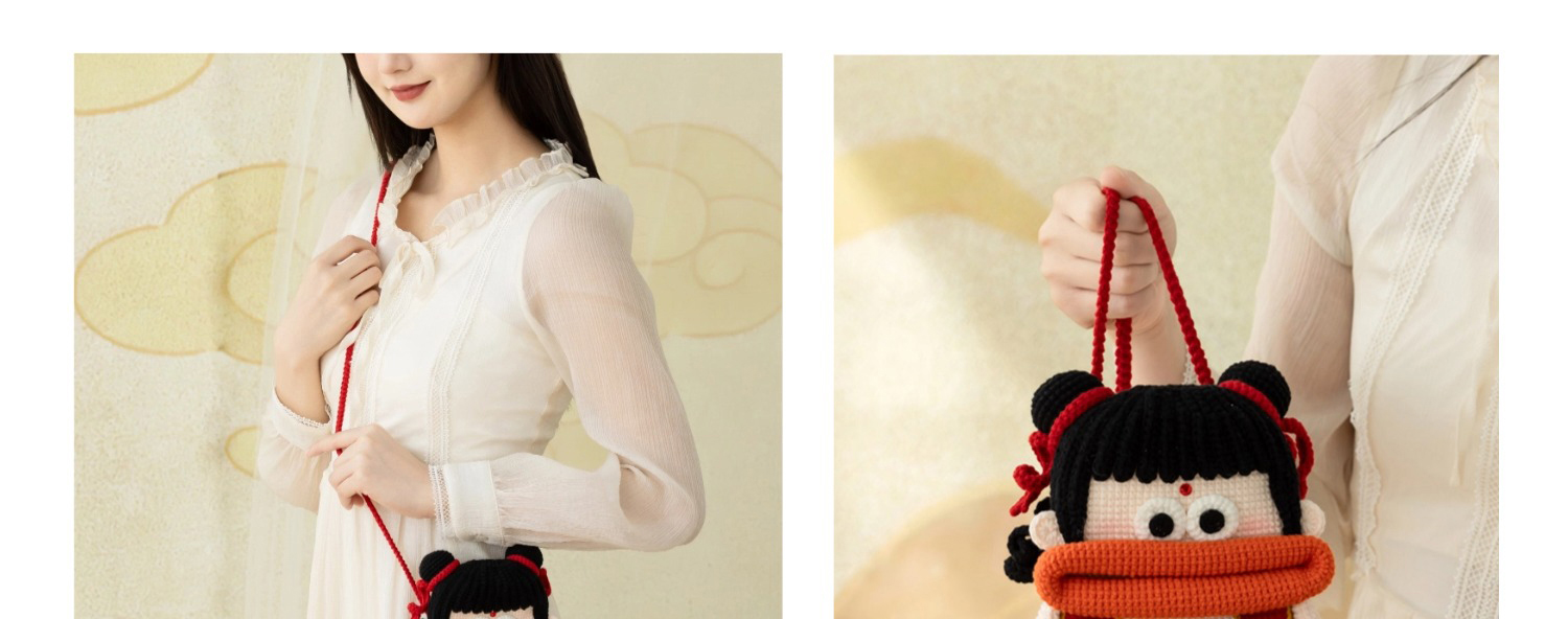 苏苏姐家哪吒蛋袋手机包手工DIY钩针编织4股棉自制毛线团材料包