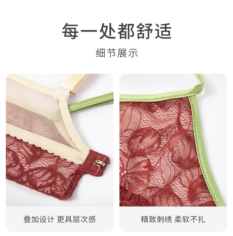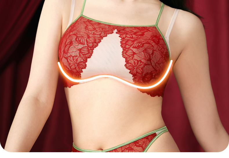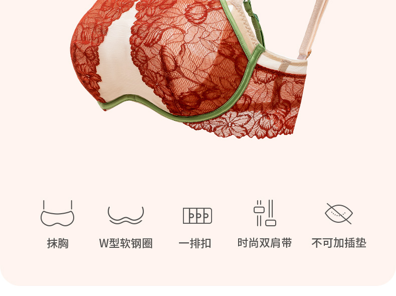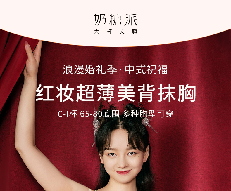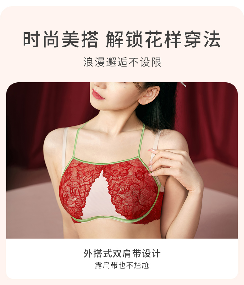【积分兑换】红妆蕾丝抹胸式文胸中式婚礼主题大胸内衣女