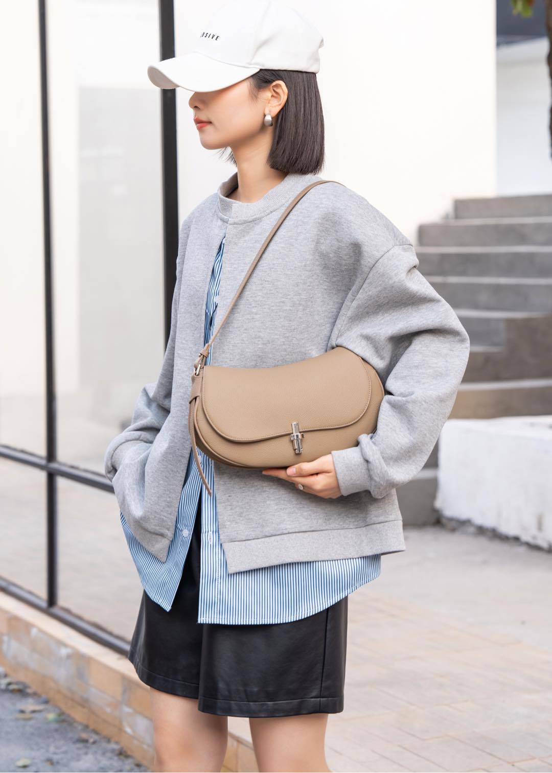 【预售3天】2025新款简约单肩斜挎女包小众包包质感圆筒包D3010