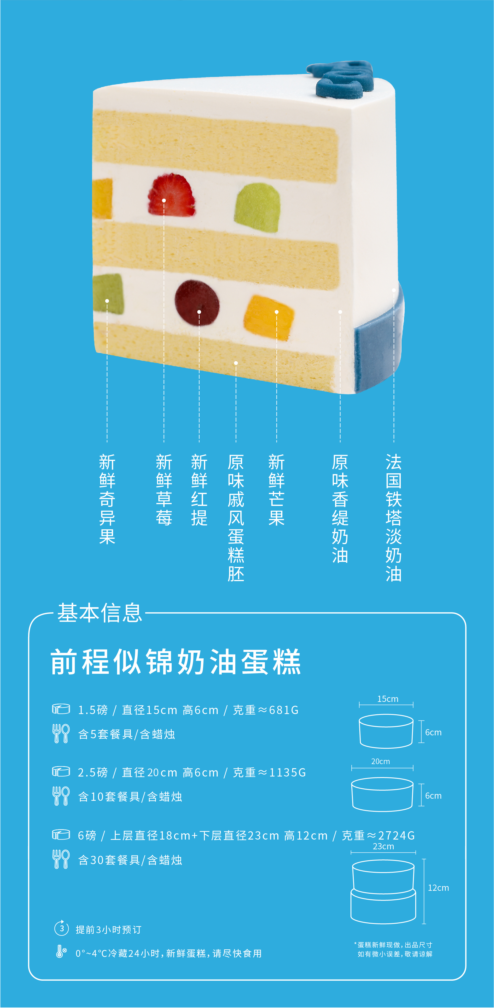 前程似锦奶油蛋糕,可选1.5/2.5/6磅
