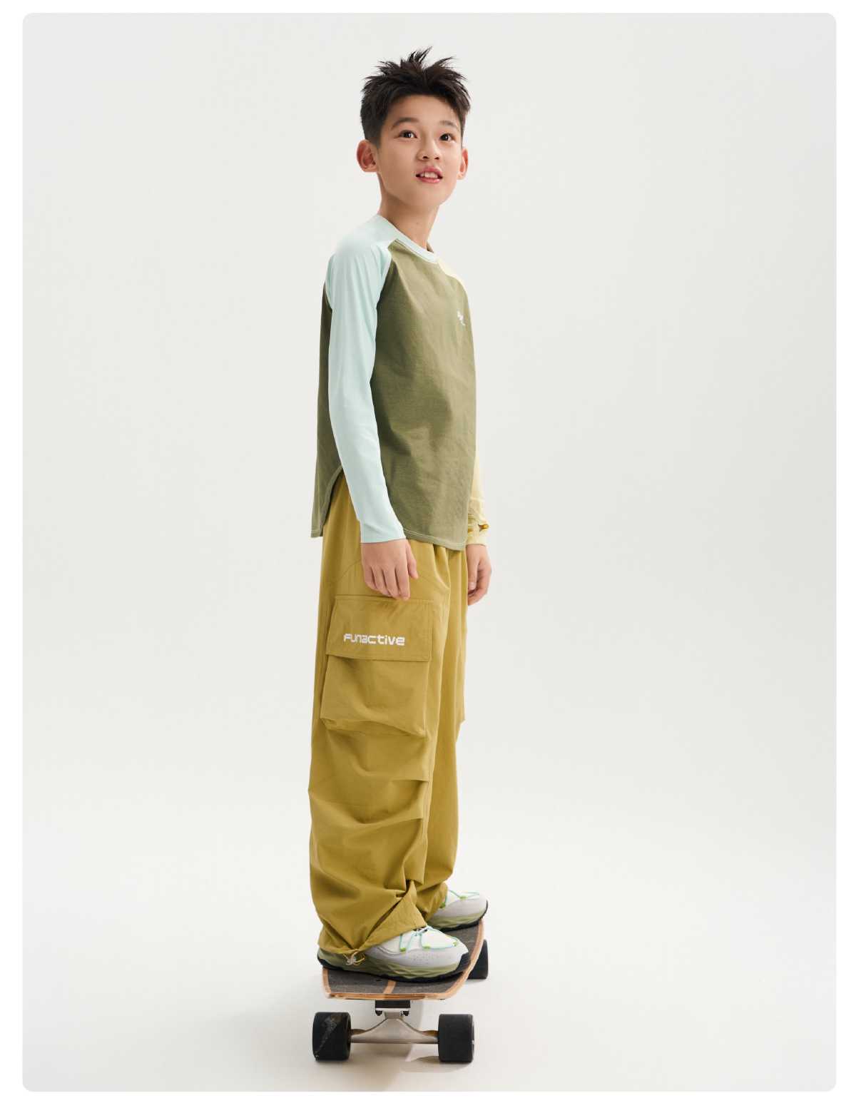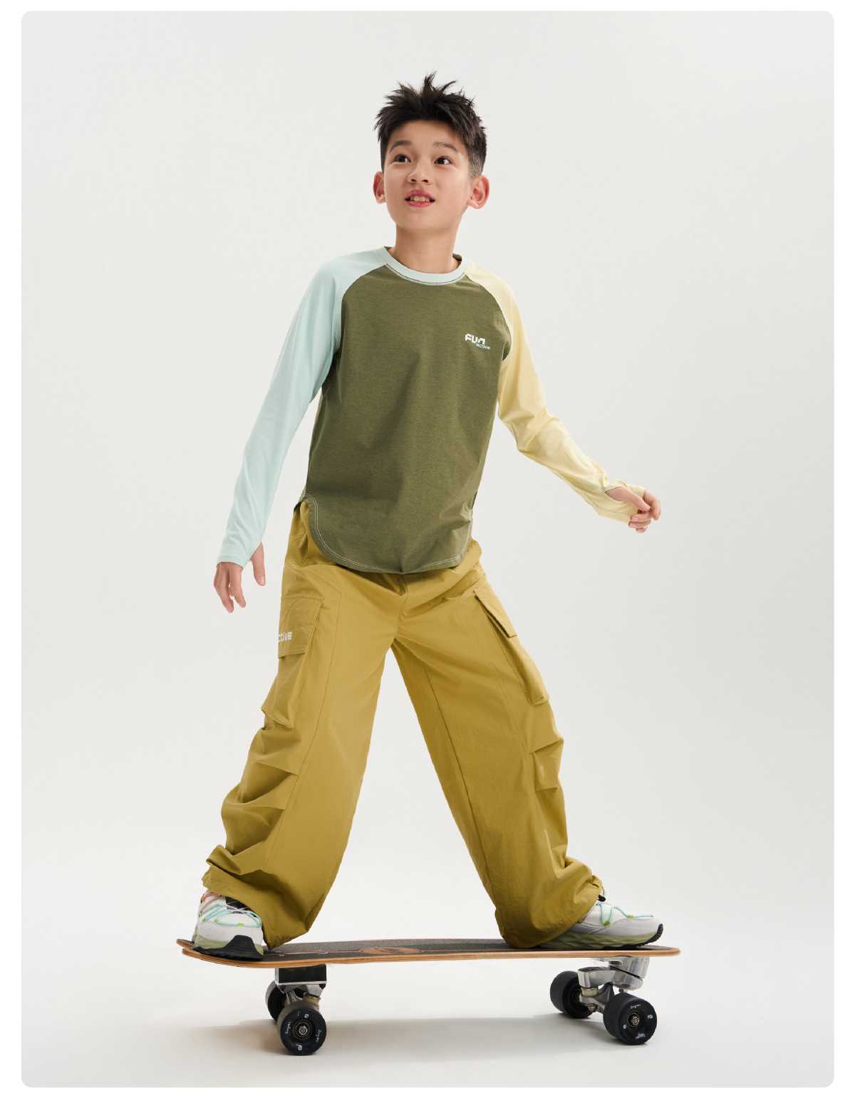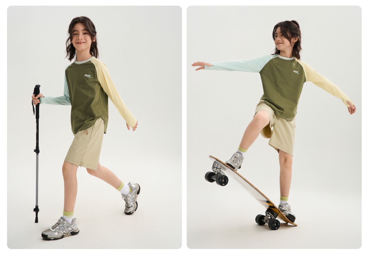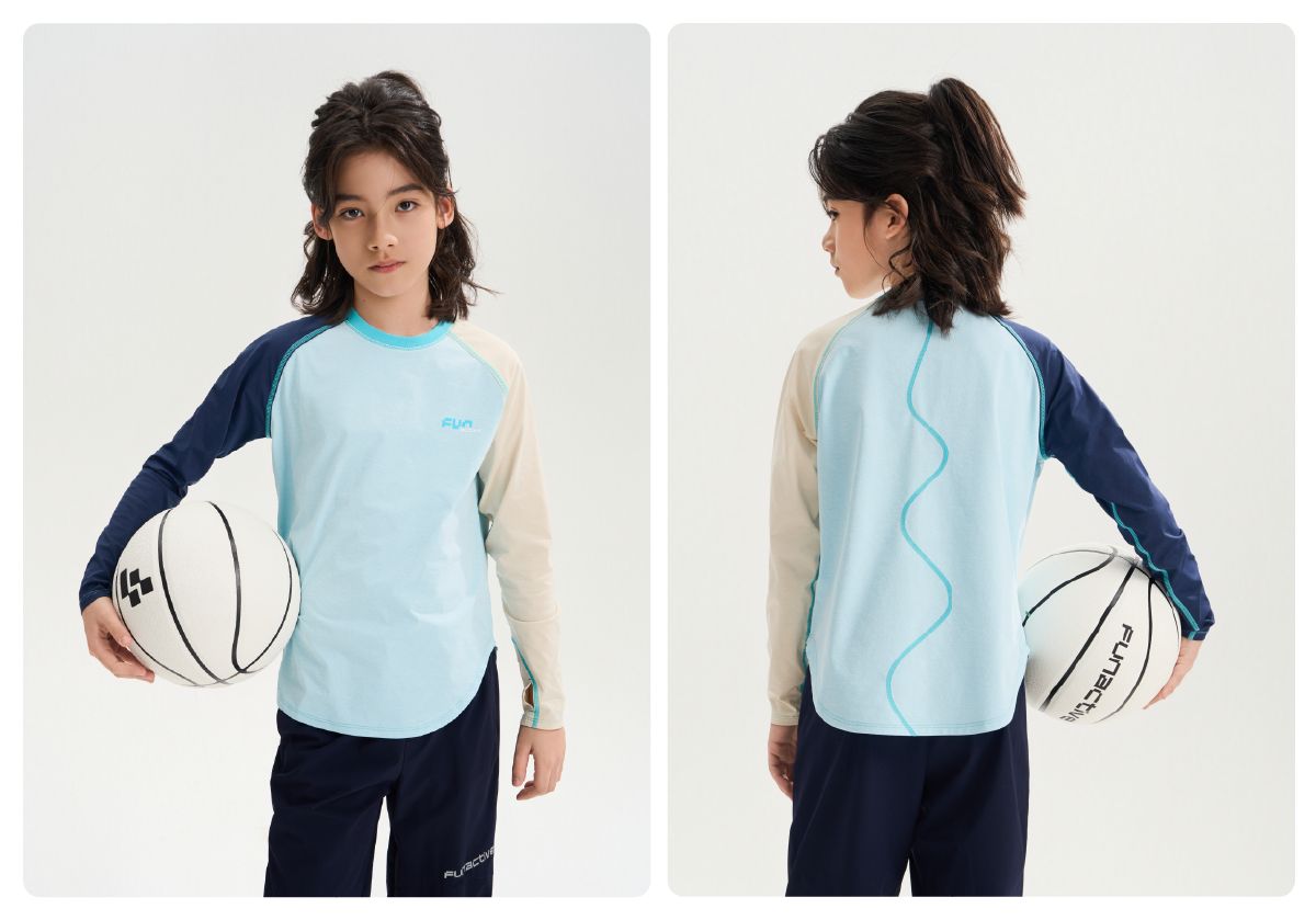 funactive棉感速干衣吸湿男童儿童防晒运动服插肩T恤F1UT20329