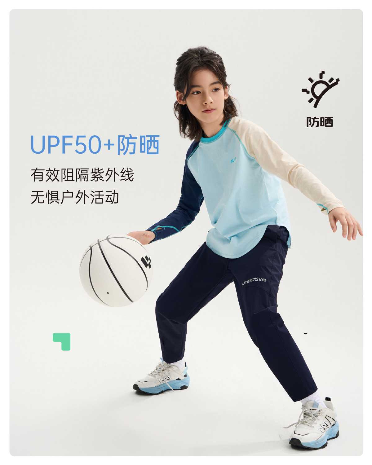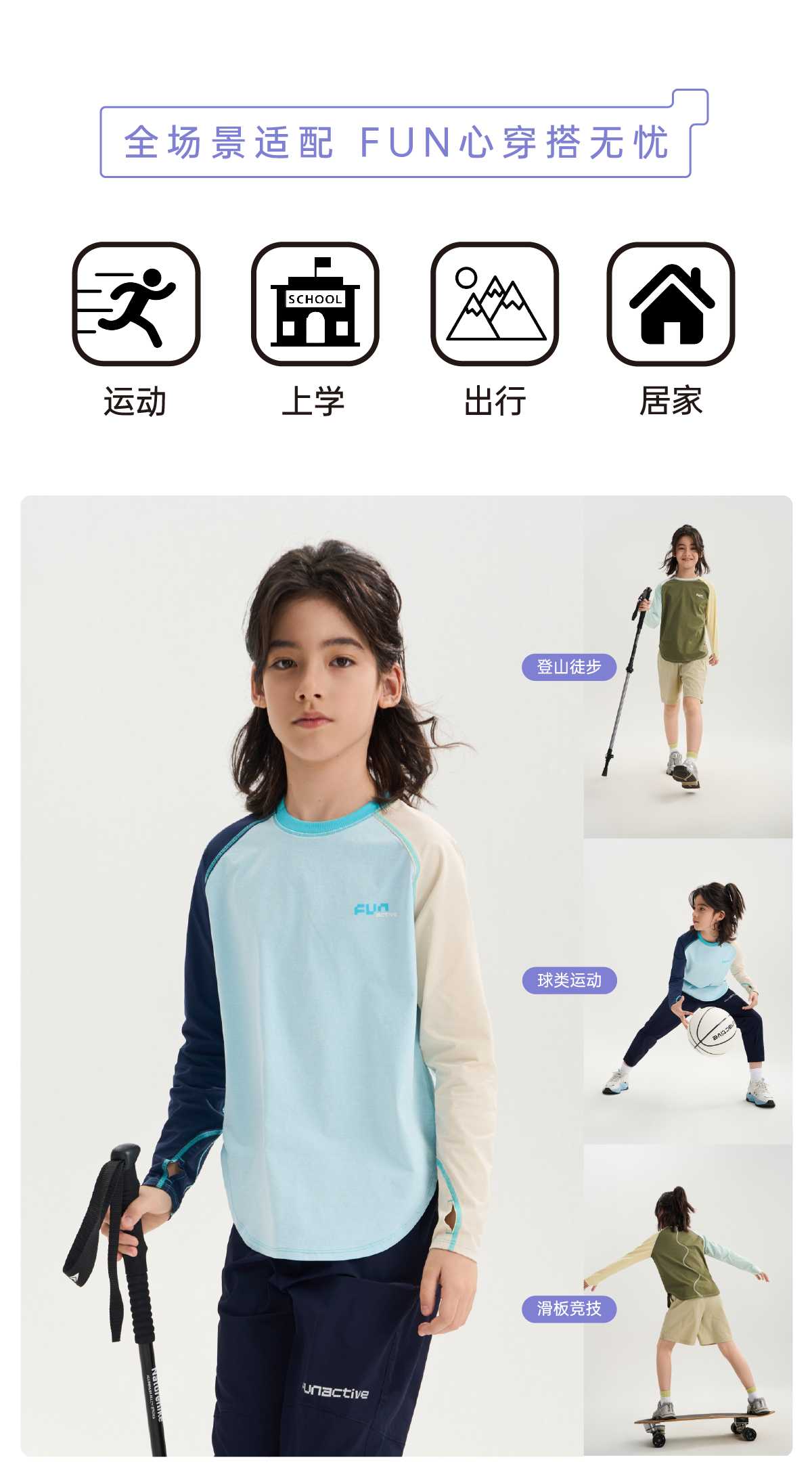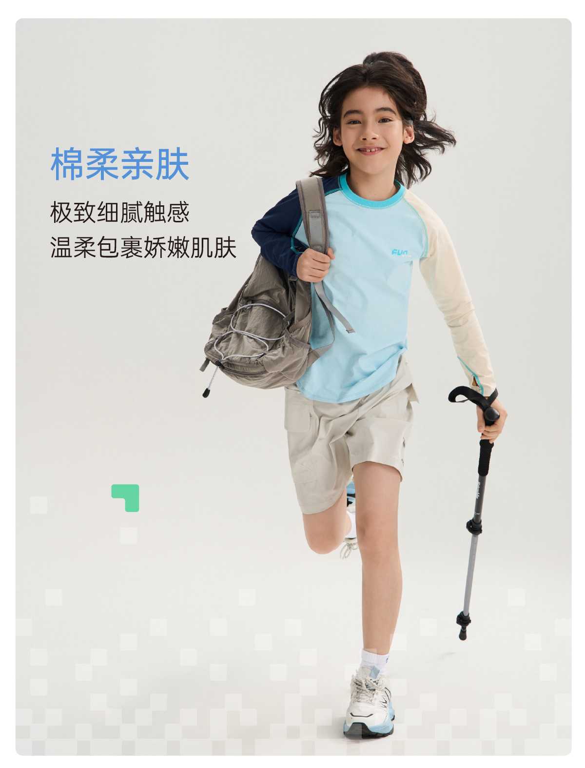 funactive棉感速干衣吸湿男童儿童防晒运动服插肩T恤F1UT20329