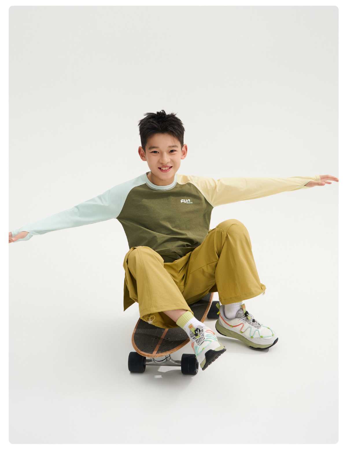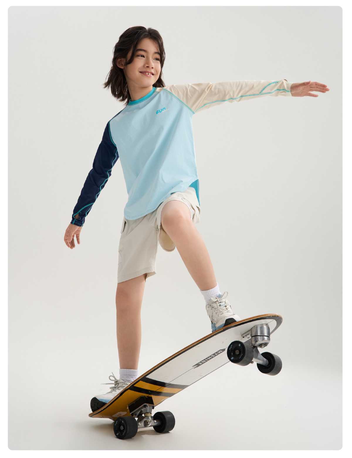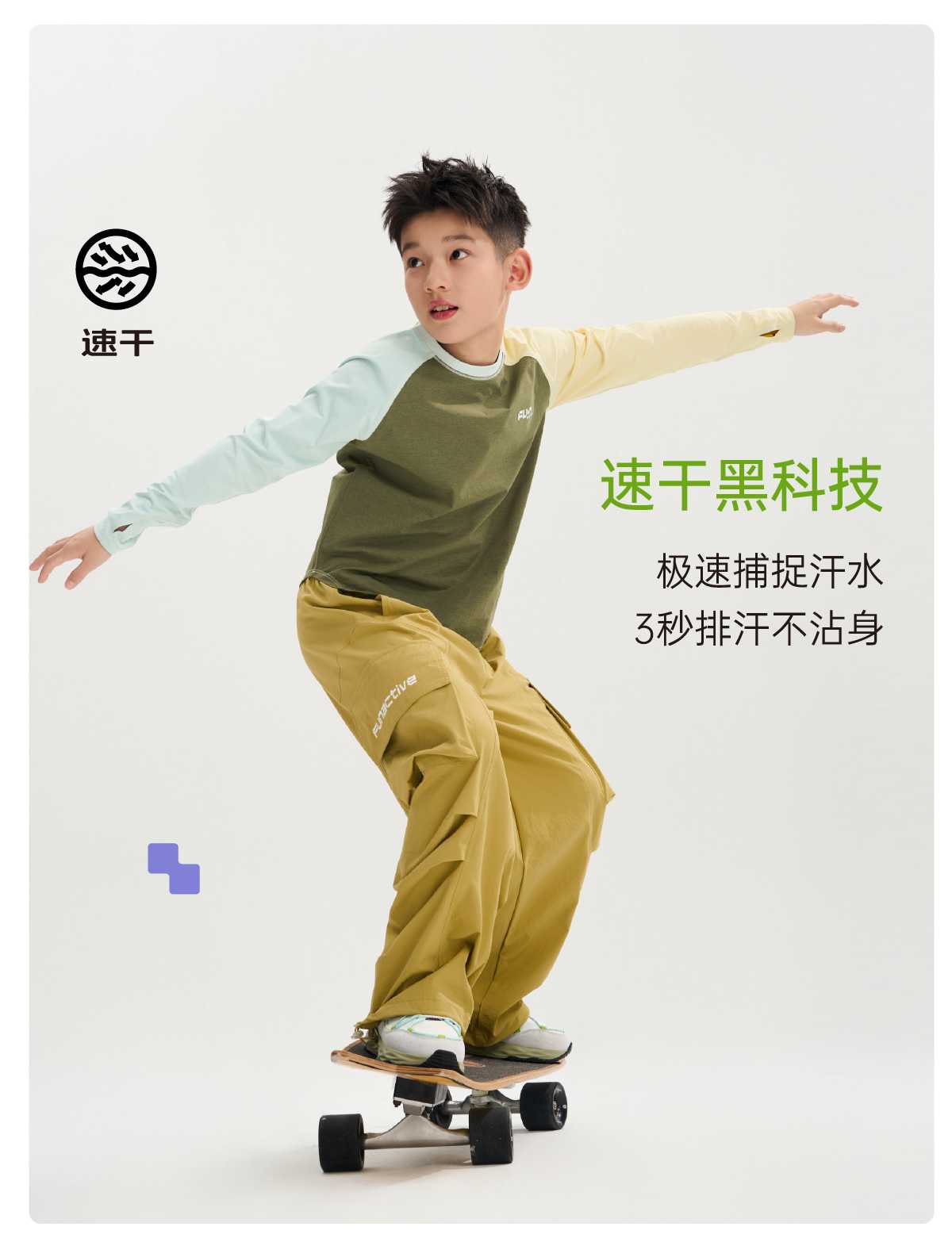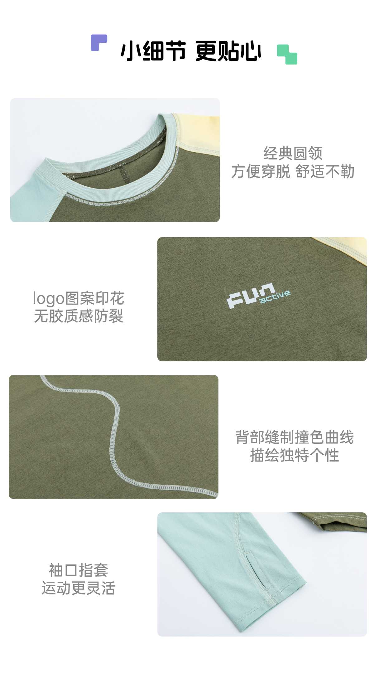 funactive棉感速干衣吸湿男童儿童防晒运动服插肩T恤F1UT20329