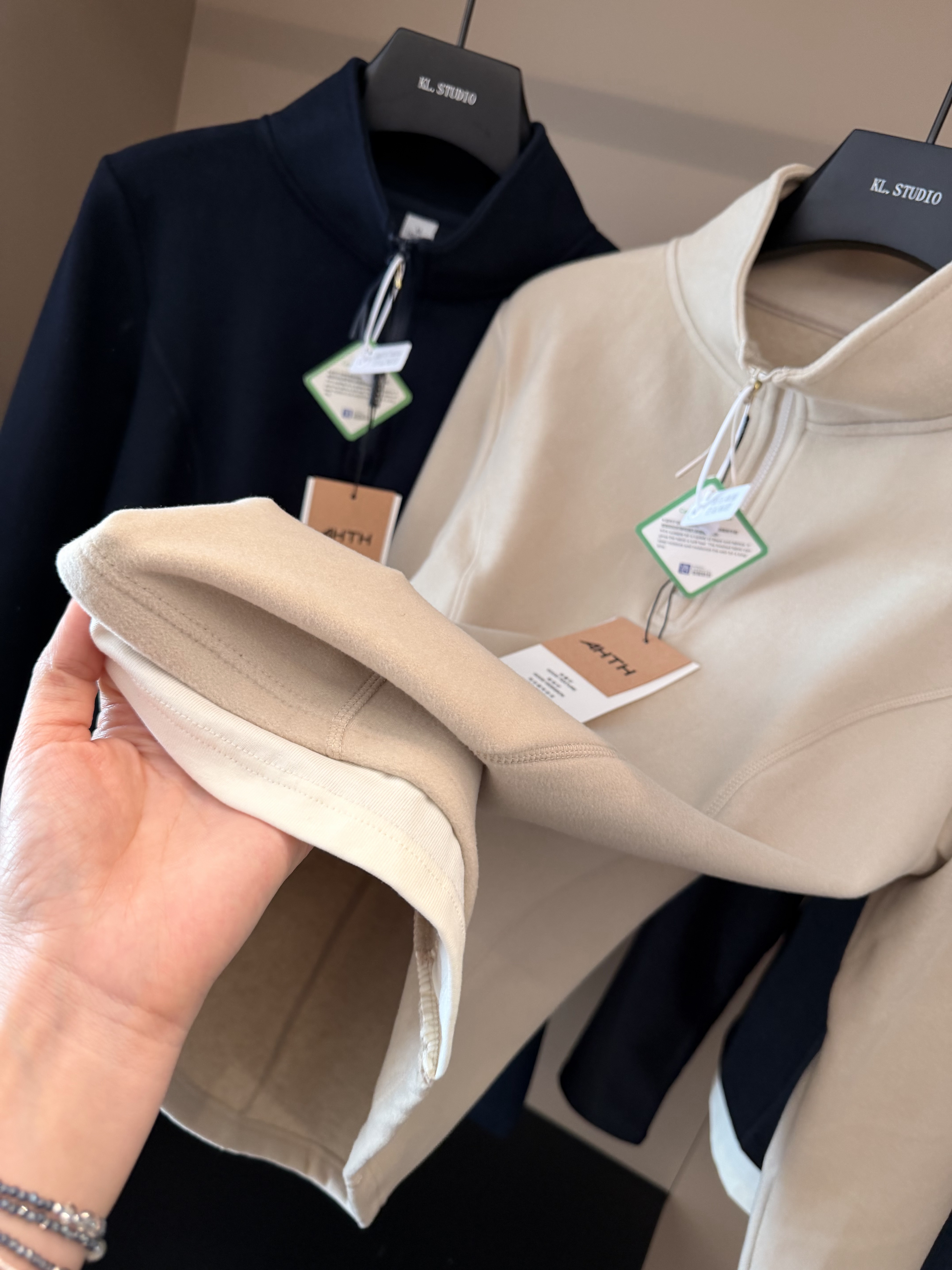 上身效果无敌好~客供羊毛蚕丝混纺材质,既有羊毛的保暖性又有蚕丝的顺滑。贴身穿着非常舒服,透气性很好,适合春秋季节单穿,冬季打底。