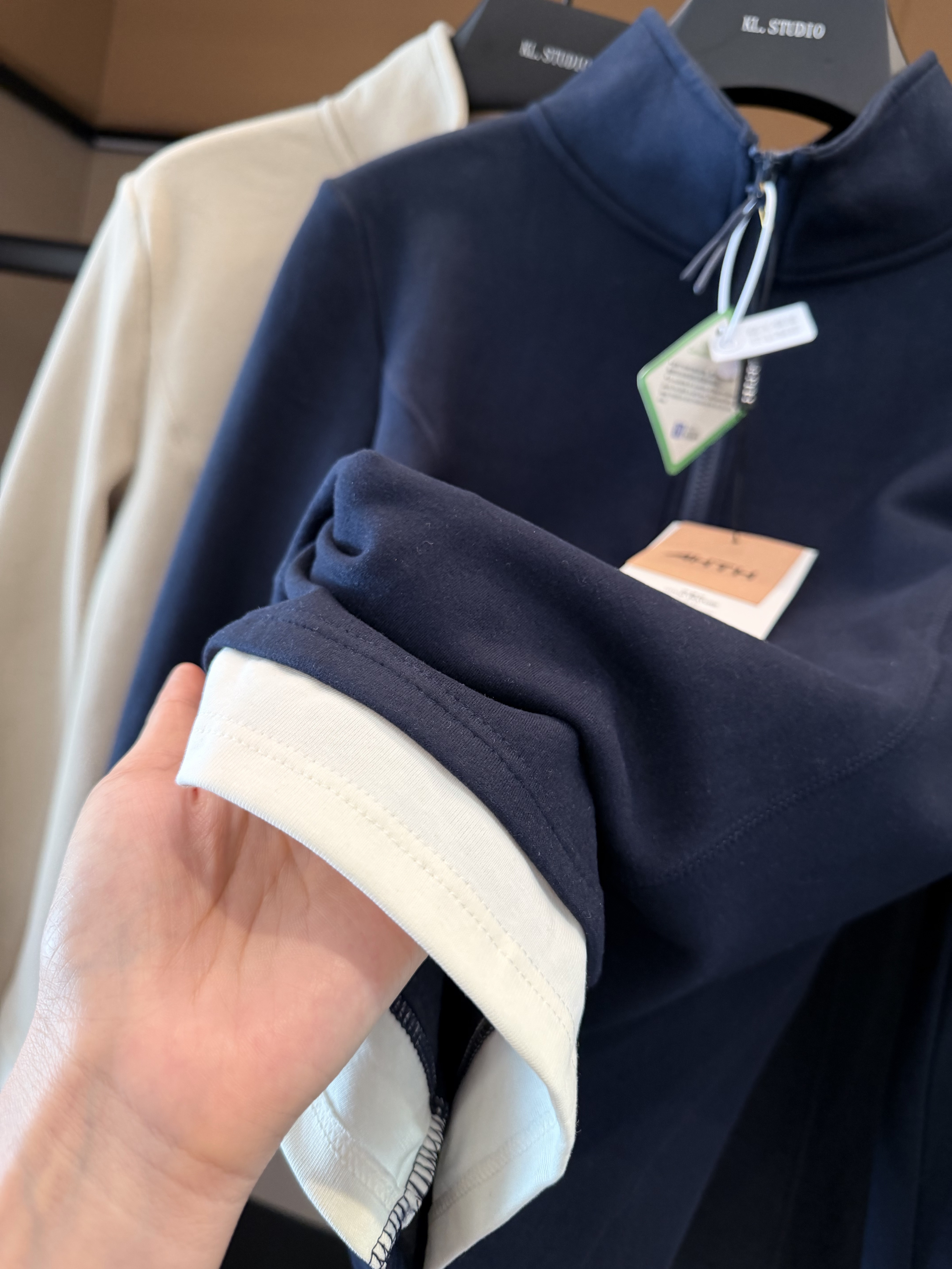 这件衣服还有一个很特别的设计点,假两件结构,外层和拼接部分层次分明,穿在身上不会显得单调。个性效果直接拉满 巨值。