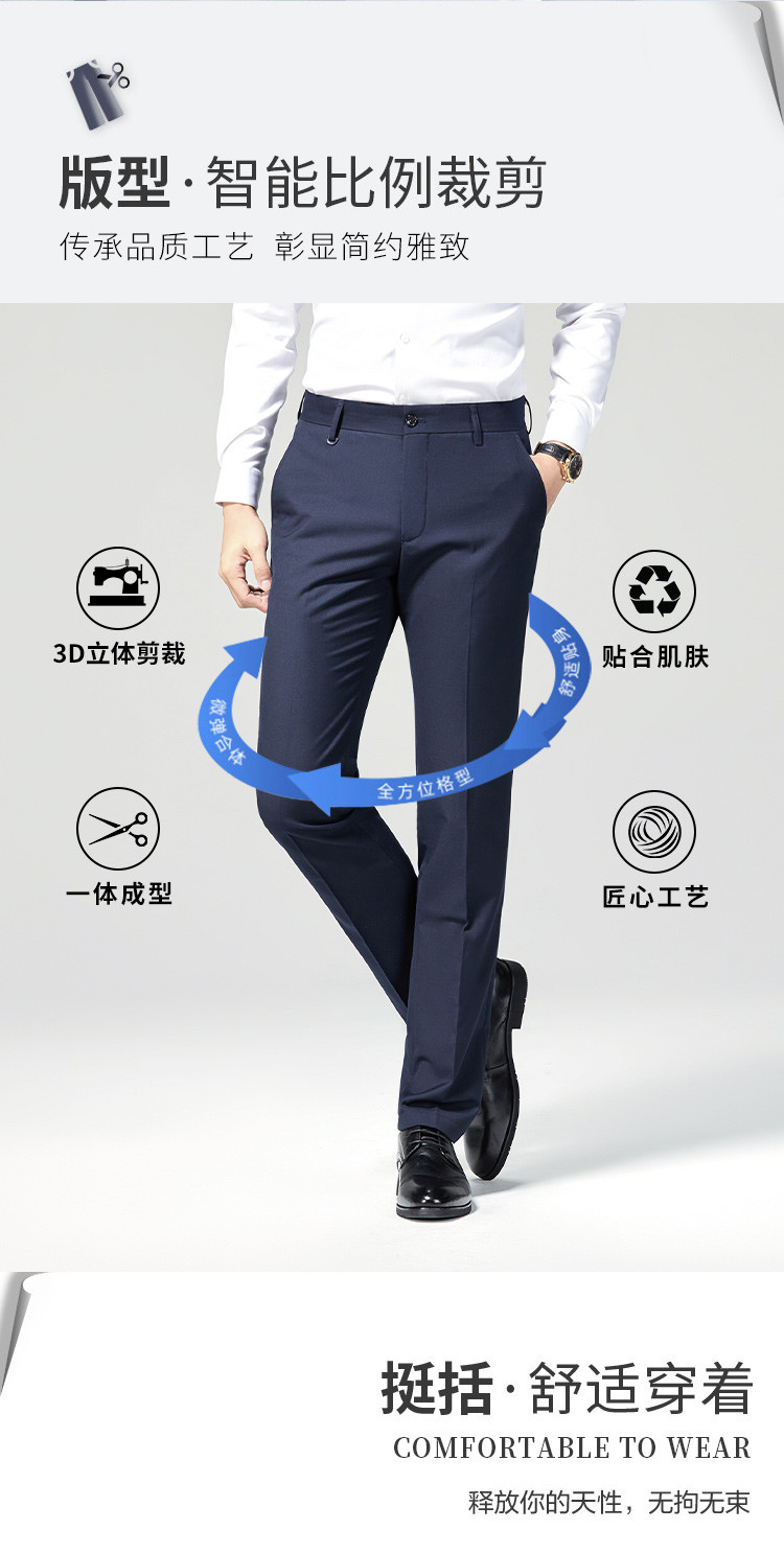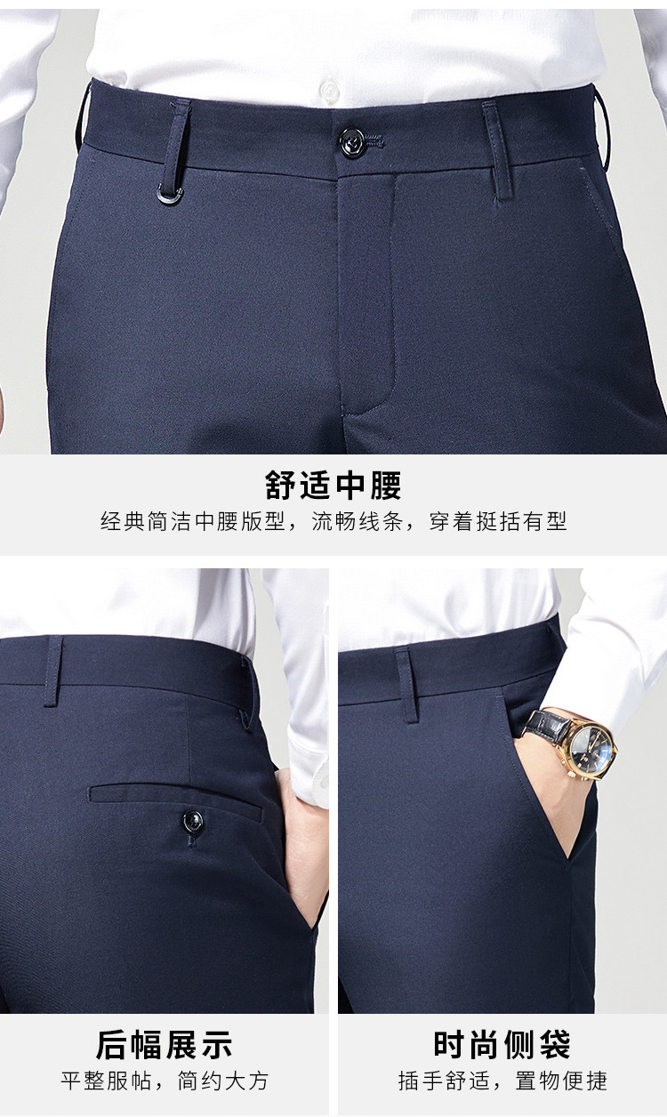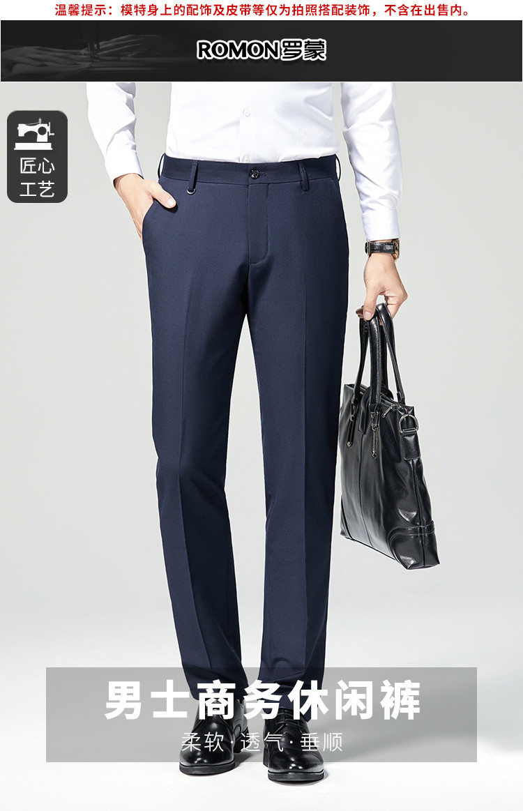 罗蒙春秋装抗皱西裤男士商务通勤纯色百搭直筒修身长裤男西装裤