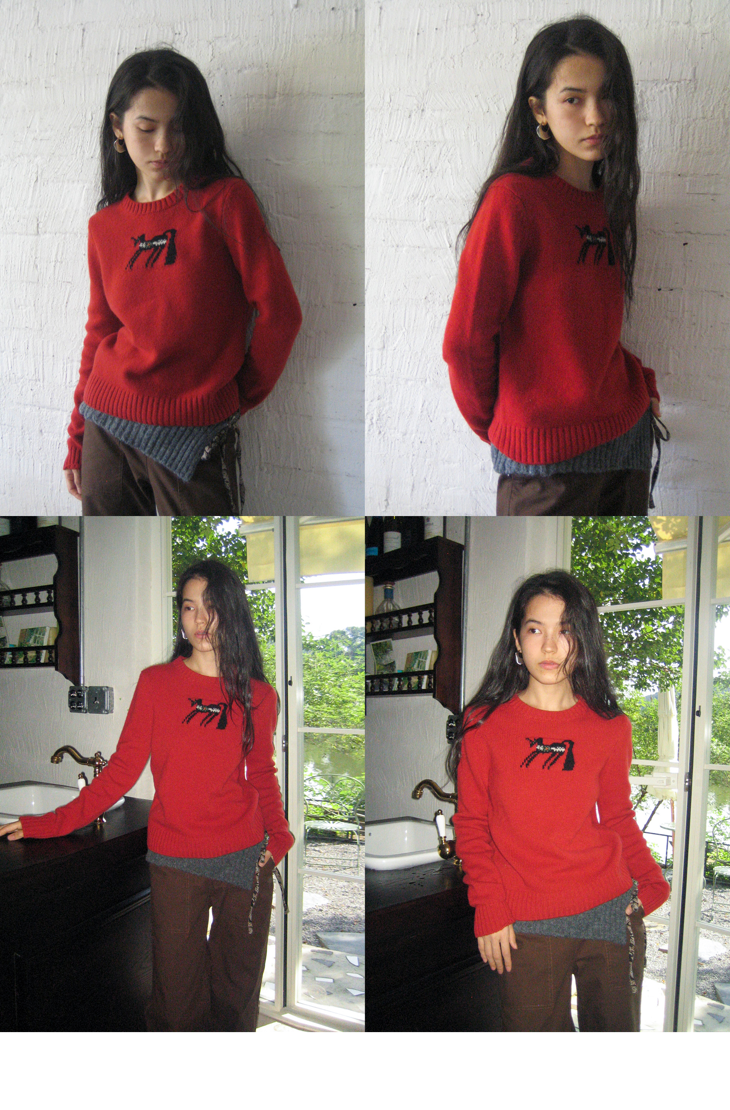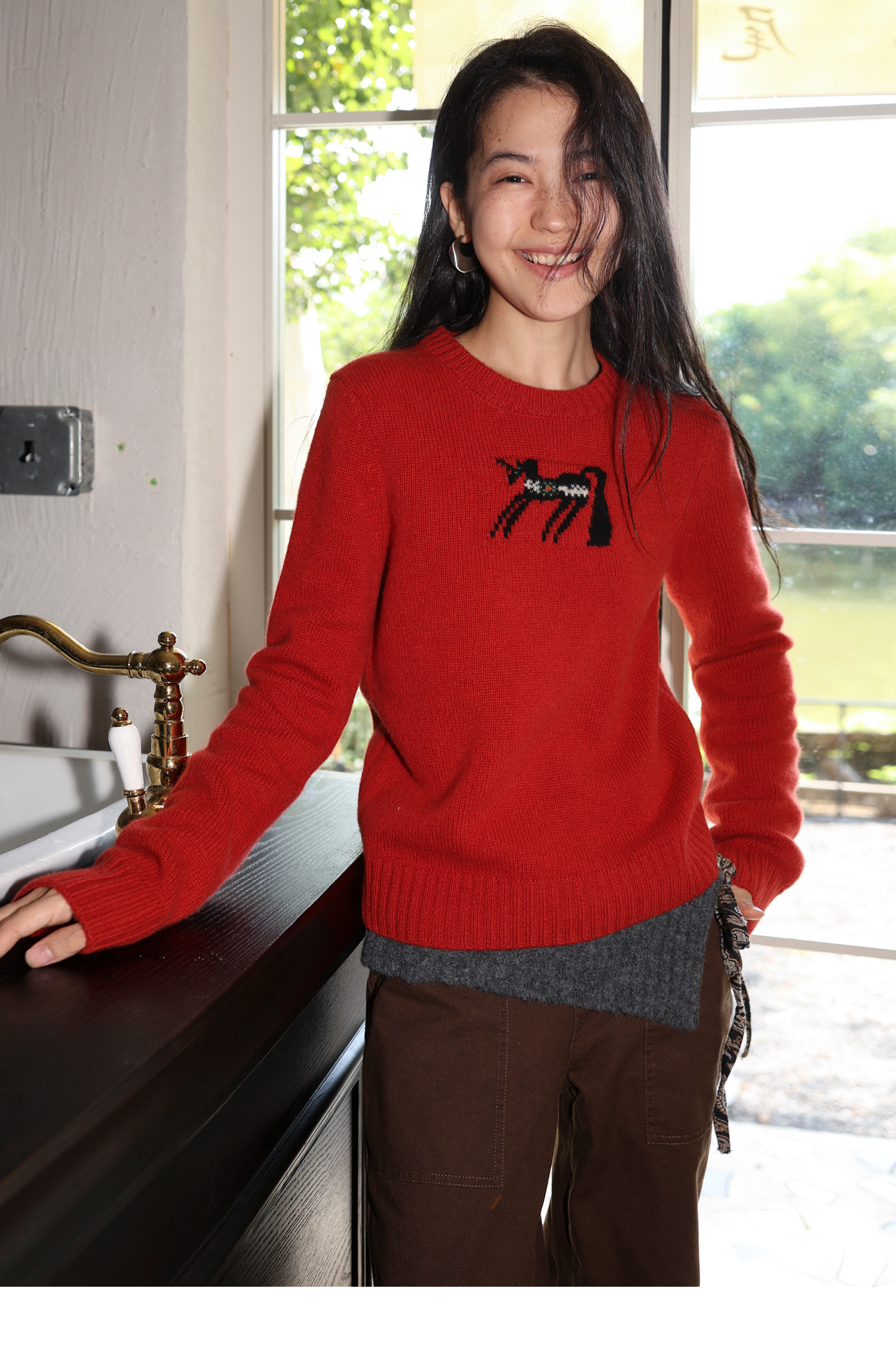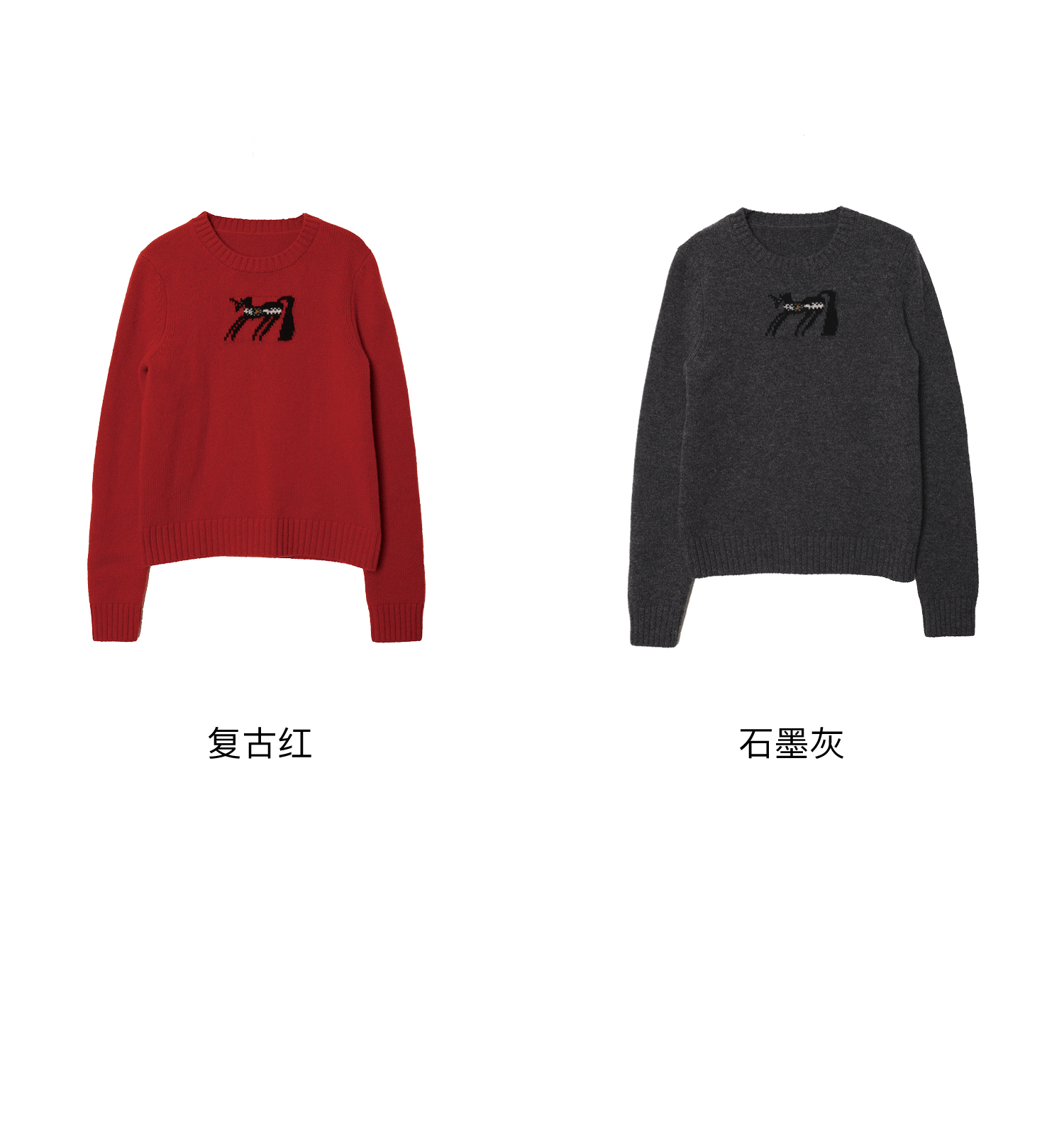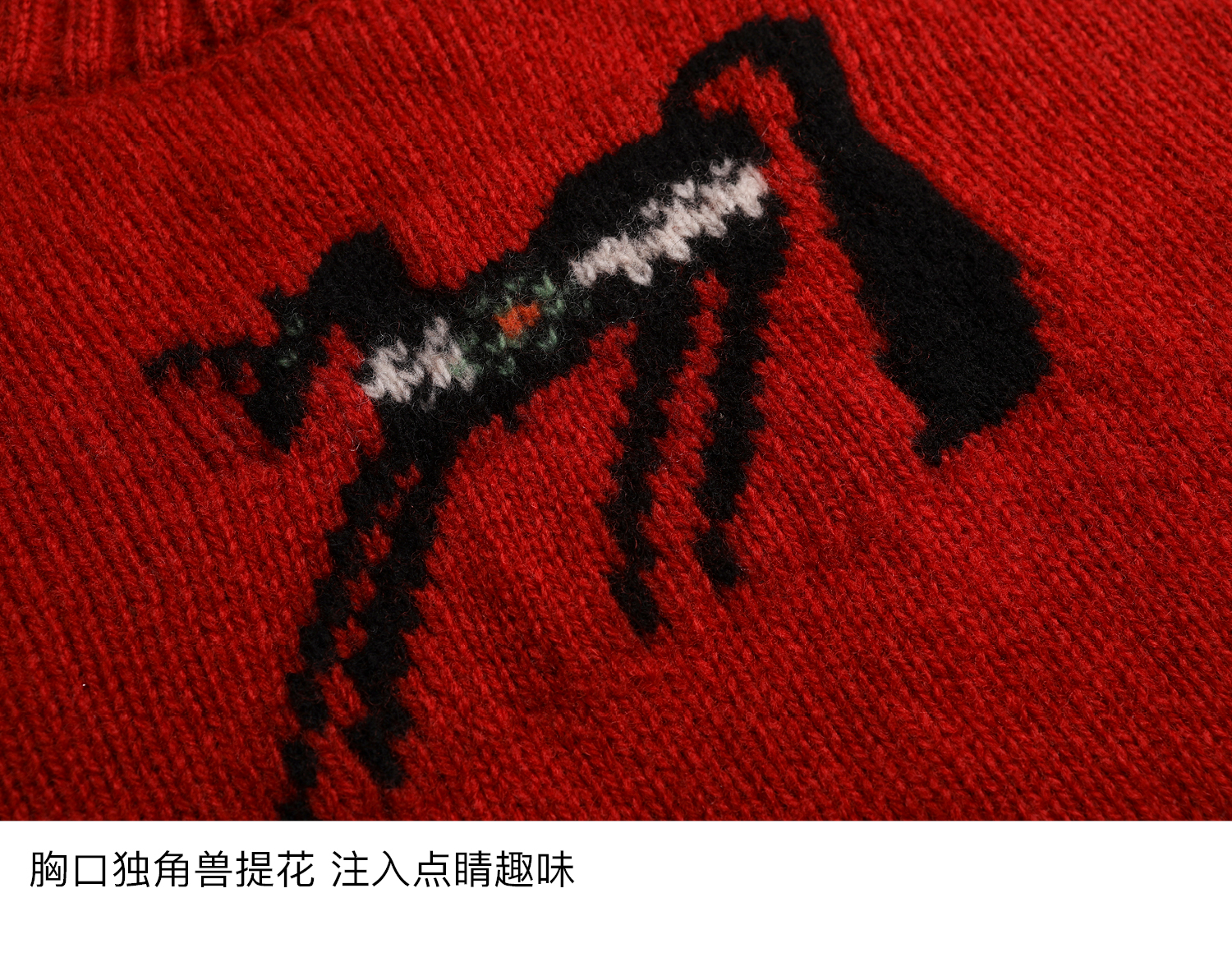 素舶 澳洲美丽奴羊毛保暖柔软独角兽提花全圆领针织衫套头毛衣