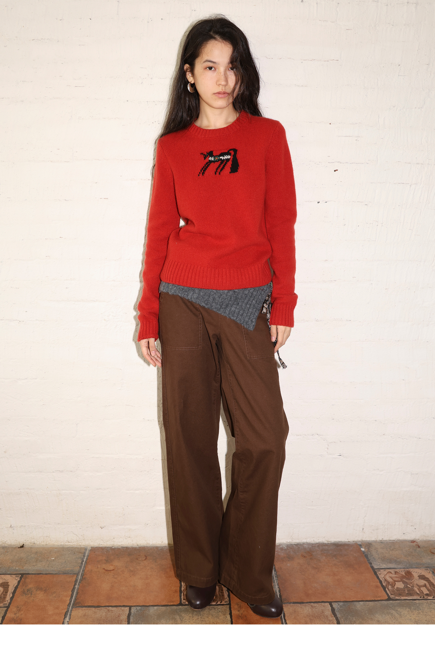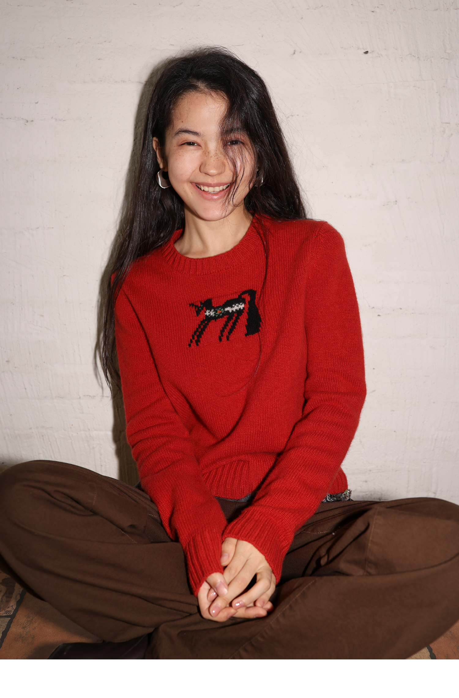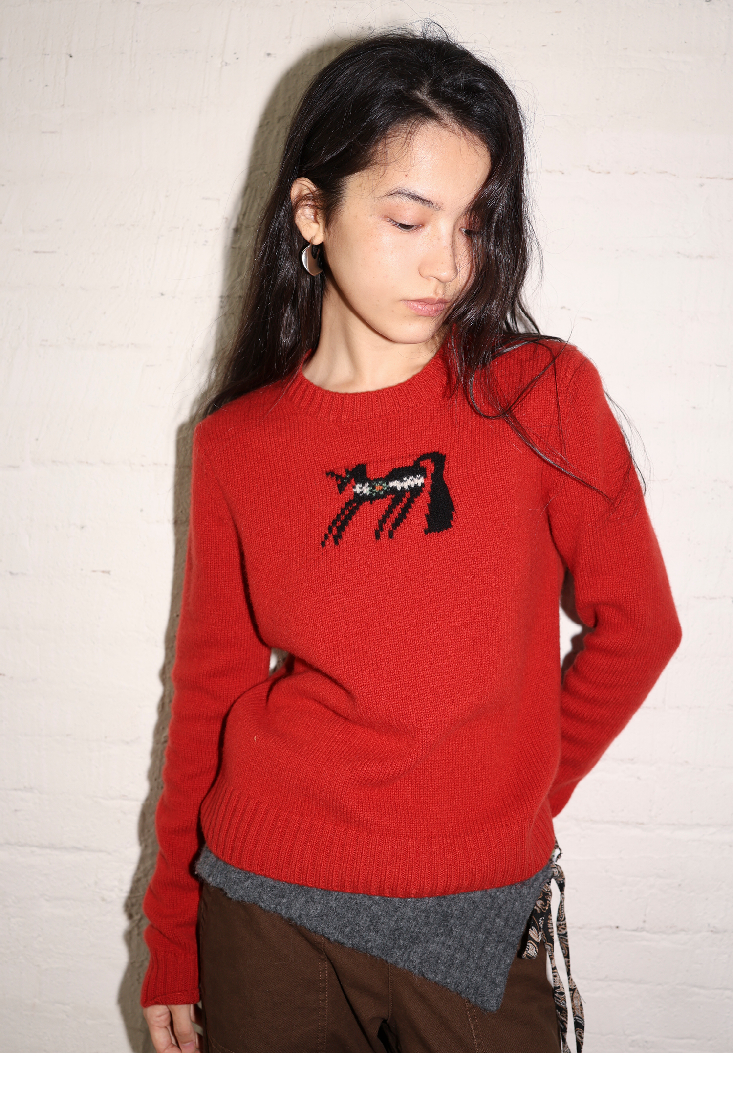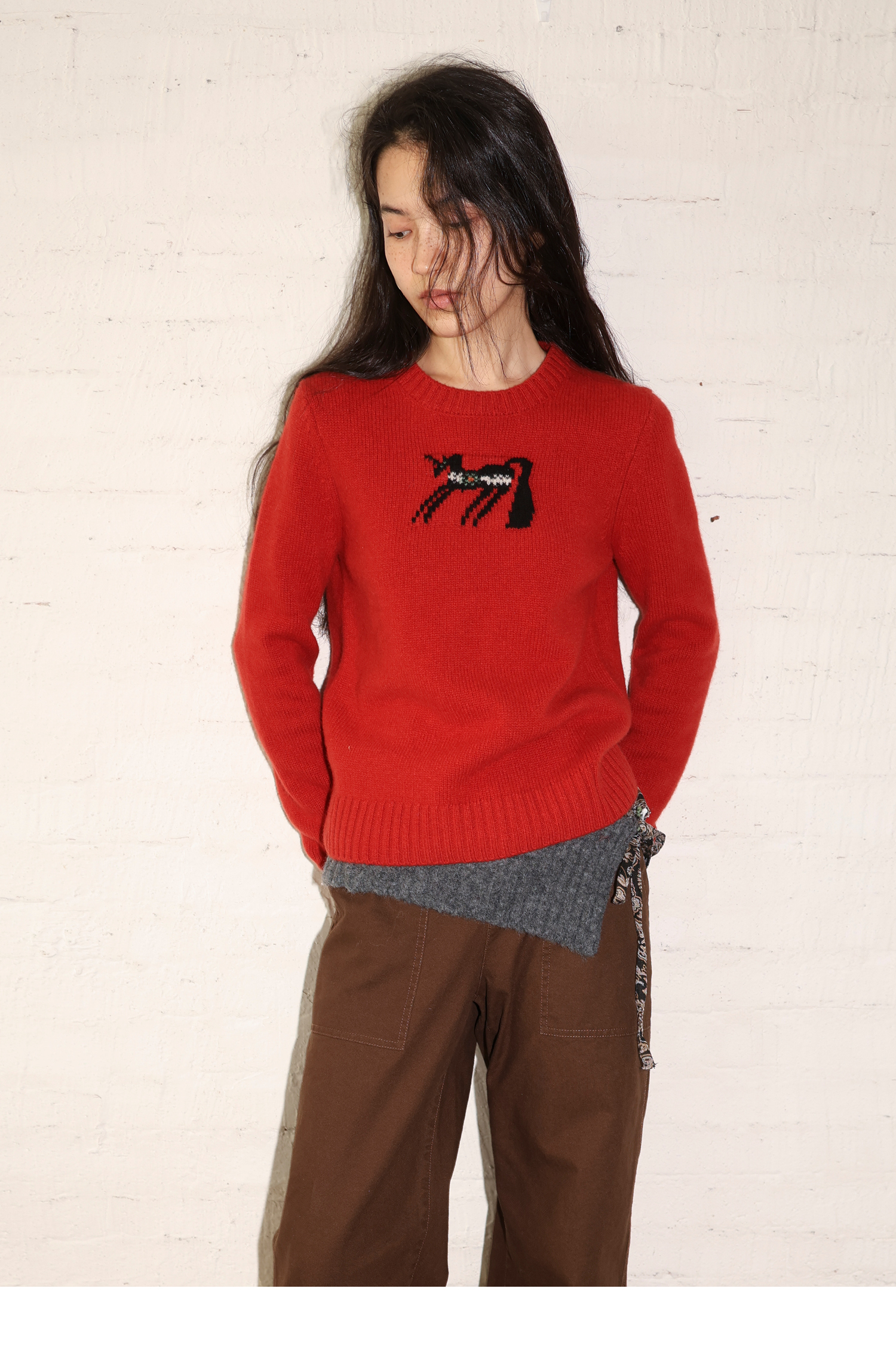 素舶 澳洲美丽奴羊毛保暖柔软独角兽提花全圆领针织衫套头毛衣