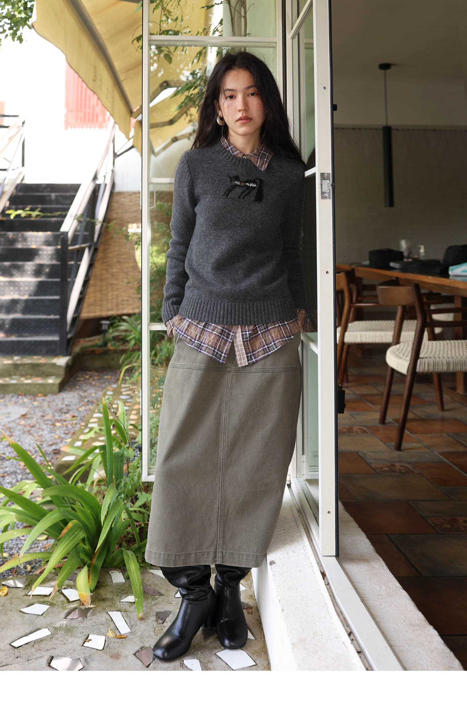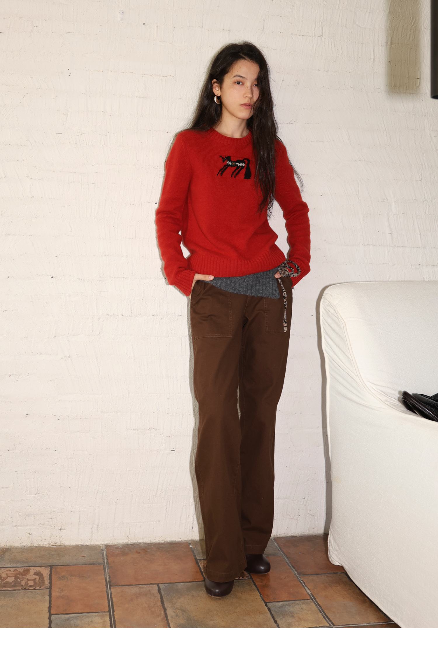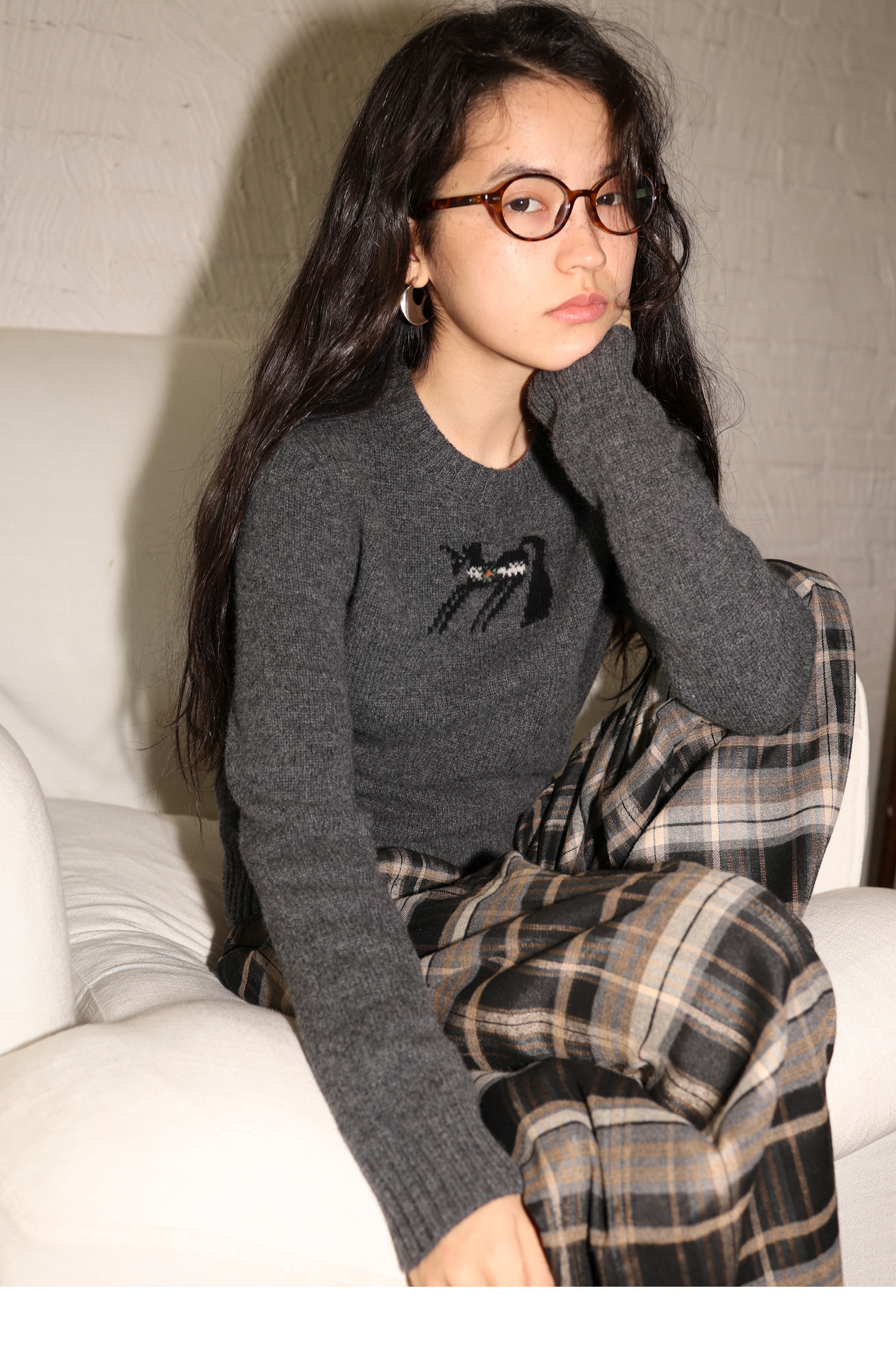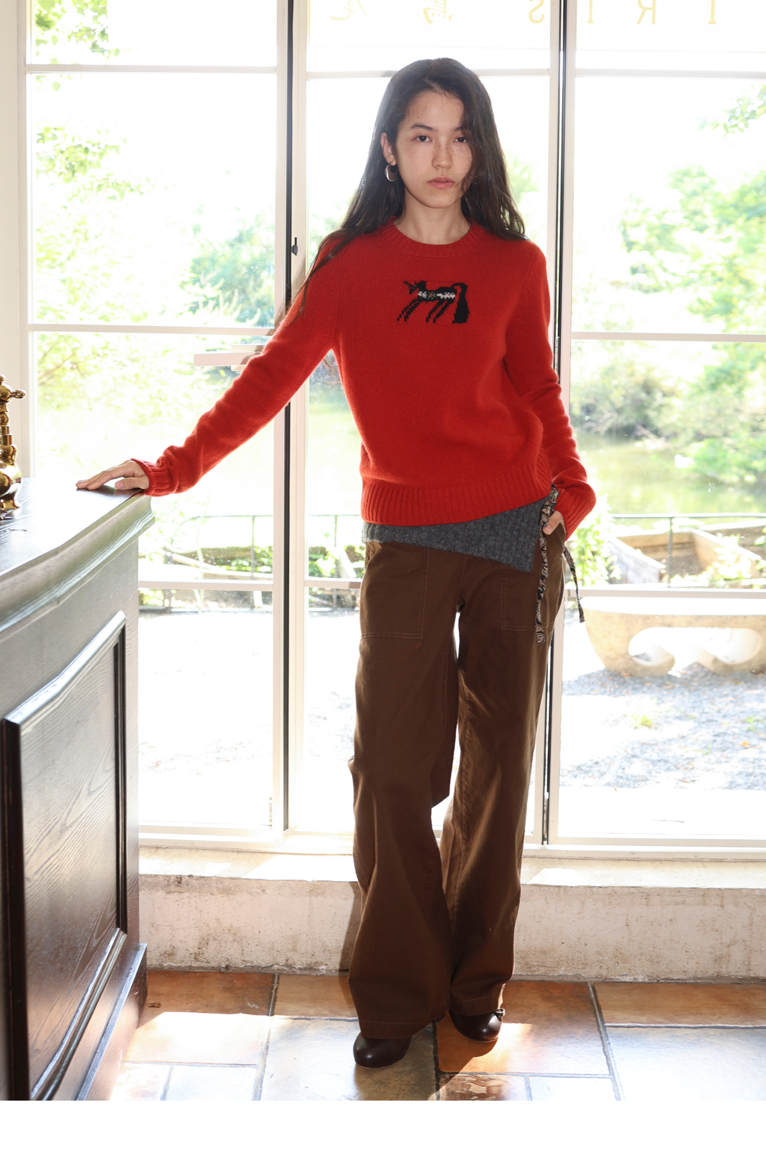 素舶 澳洲美丽奴羊毛保暖柔软独角兽提花全圆领针织衫套头毛衣