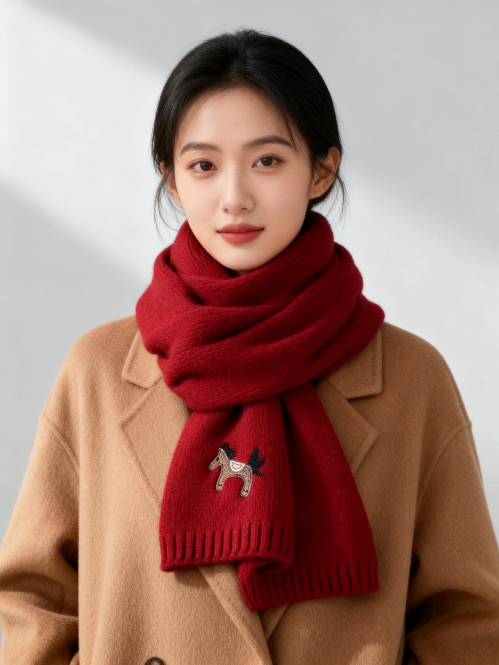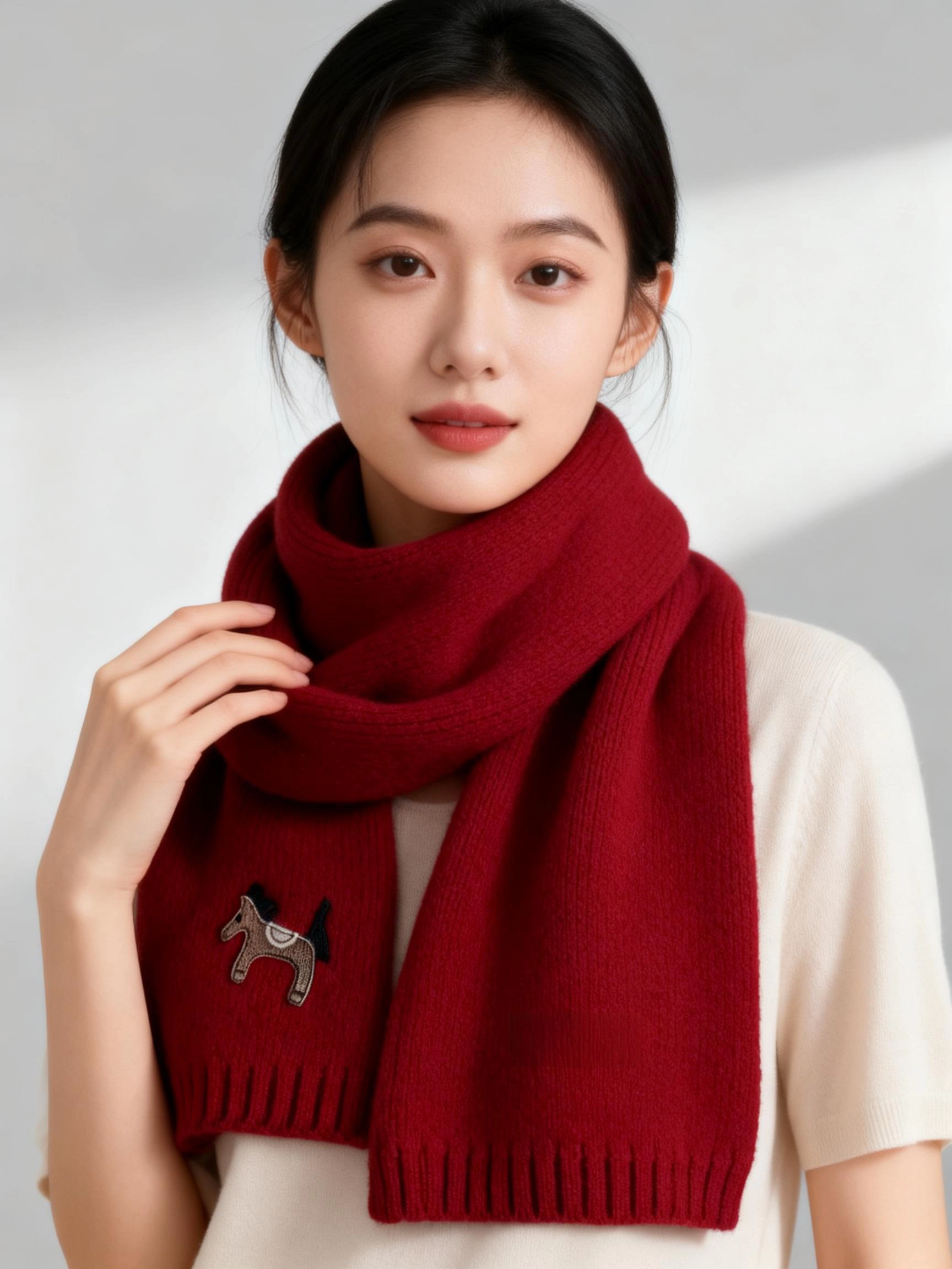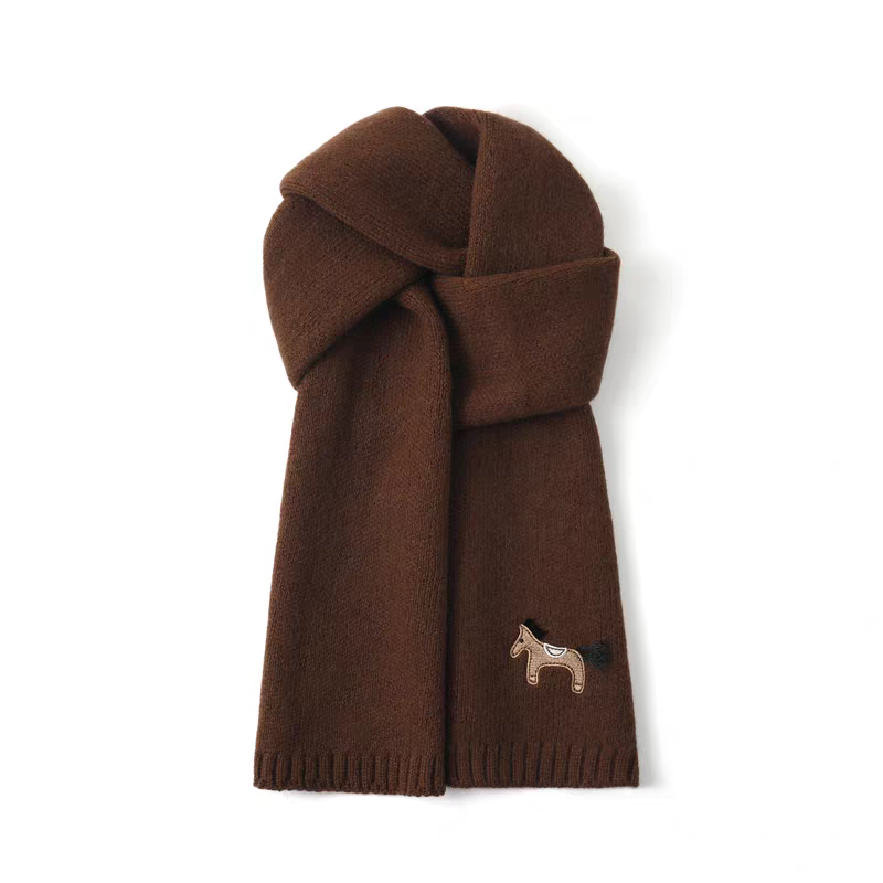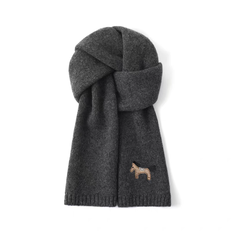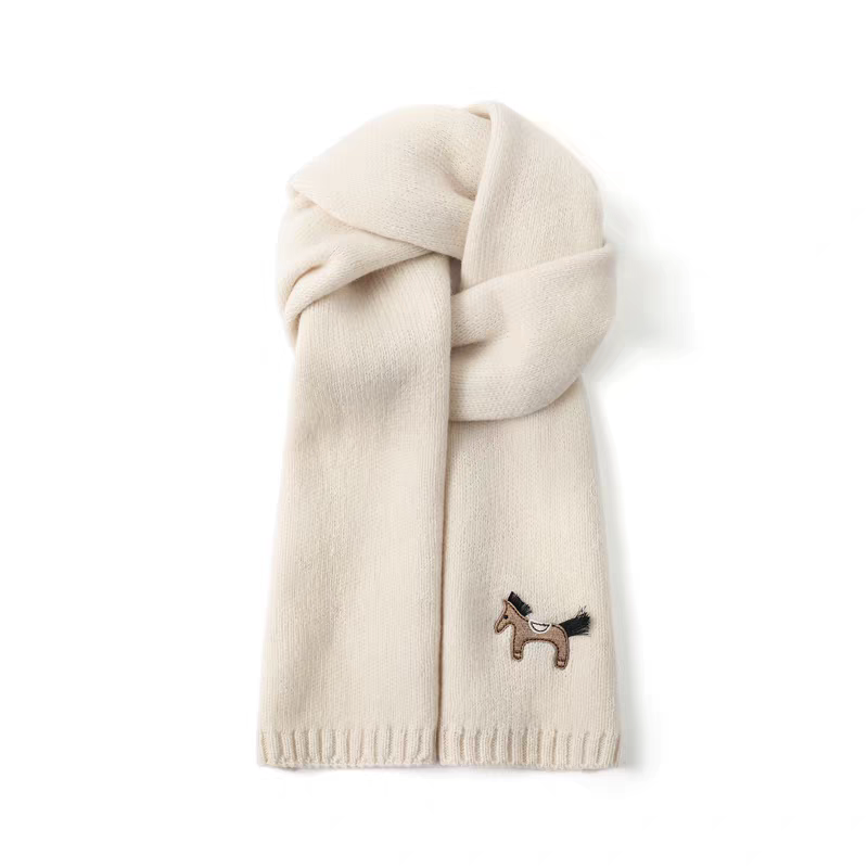 采用软糯100羊毛,触感亲肤且保暖性佳,纹理细腻有质感,饰有精致刺绣小马图案,小巧设计为围巾增添灵动细节感~