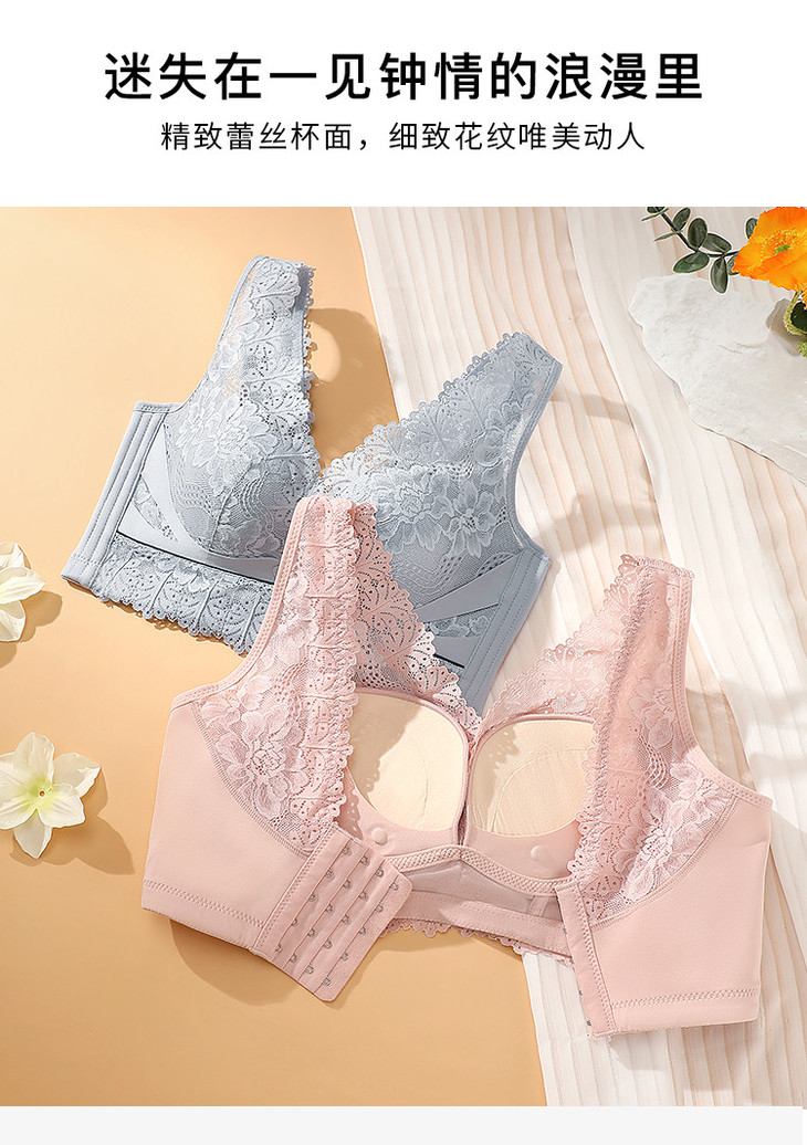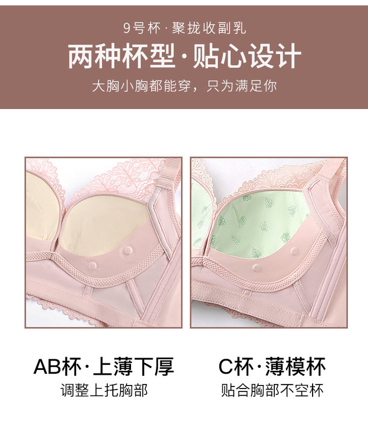 A2-【A-C杯】蕾丝美背内衣女小胸显大聚拢调整型收副乳防外扩下垂无钢圈文胸罩 良辰落英