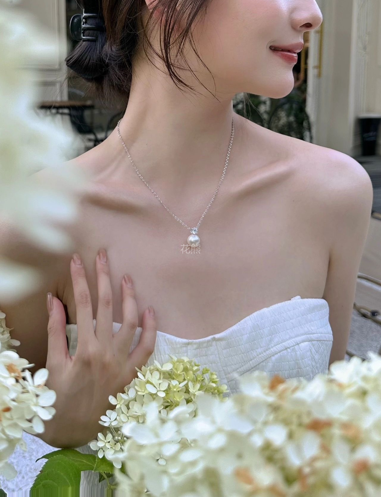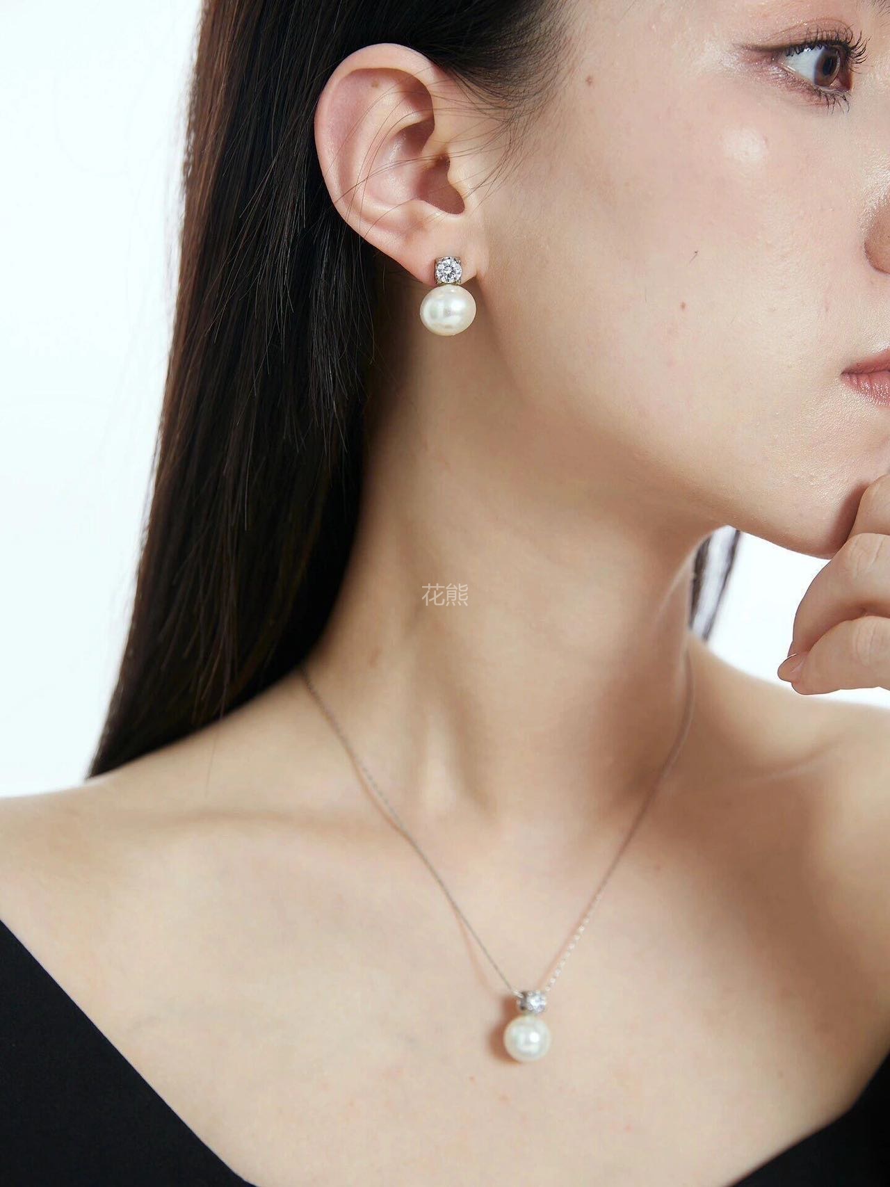 【御本木同款款戴妃项链耳钉套盒】项链+耳钉 珍珠是进口奥地利施家珍珠配件是925银镀金+优质锆石珍珠正圆无瑕 皮光清亮 温婉优雅~日常佩戴精致而不张扬,体现自信与雅致!谁戴谁好看!