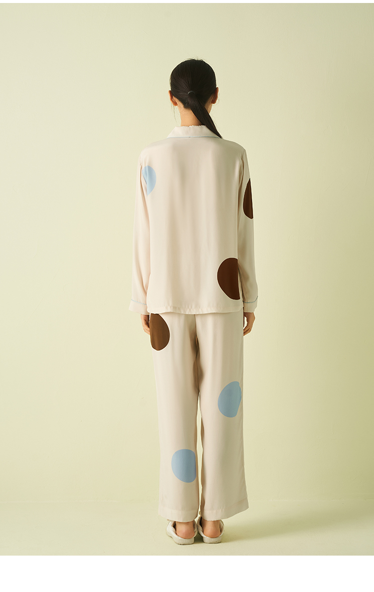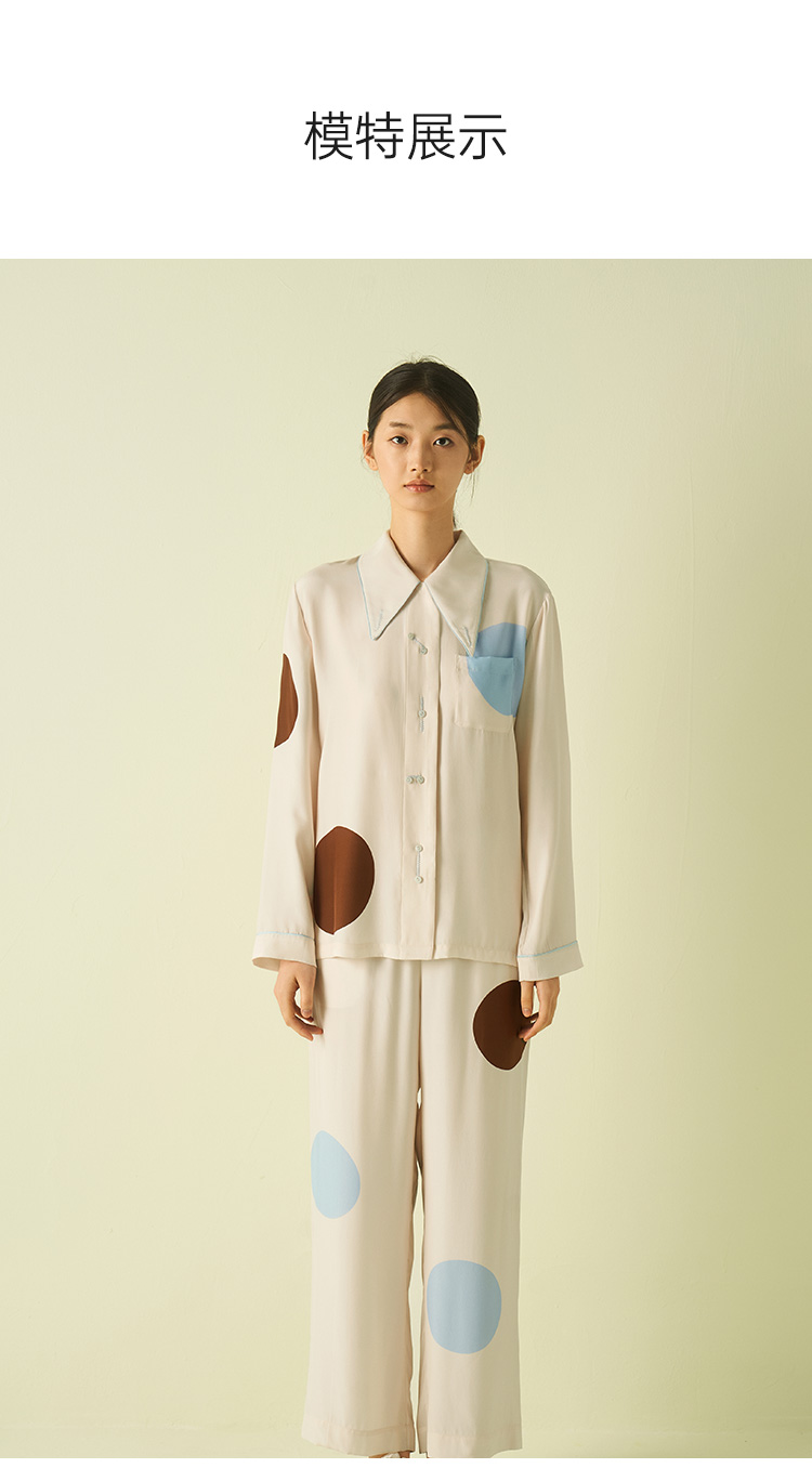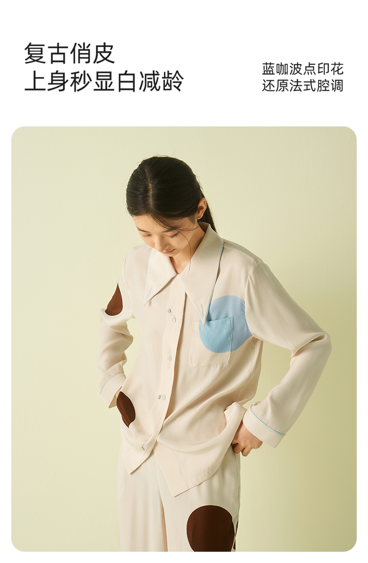桑罗美拉德波点真丝睡衣女复古俏皮撞色嵌条可外穿家居服24年新品