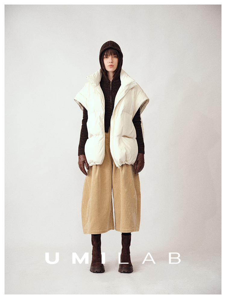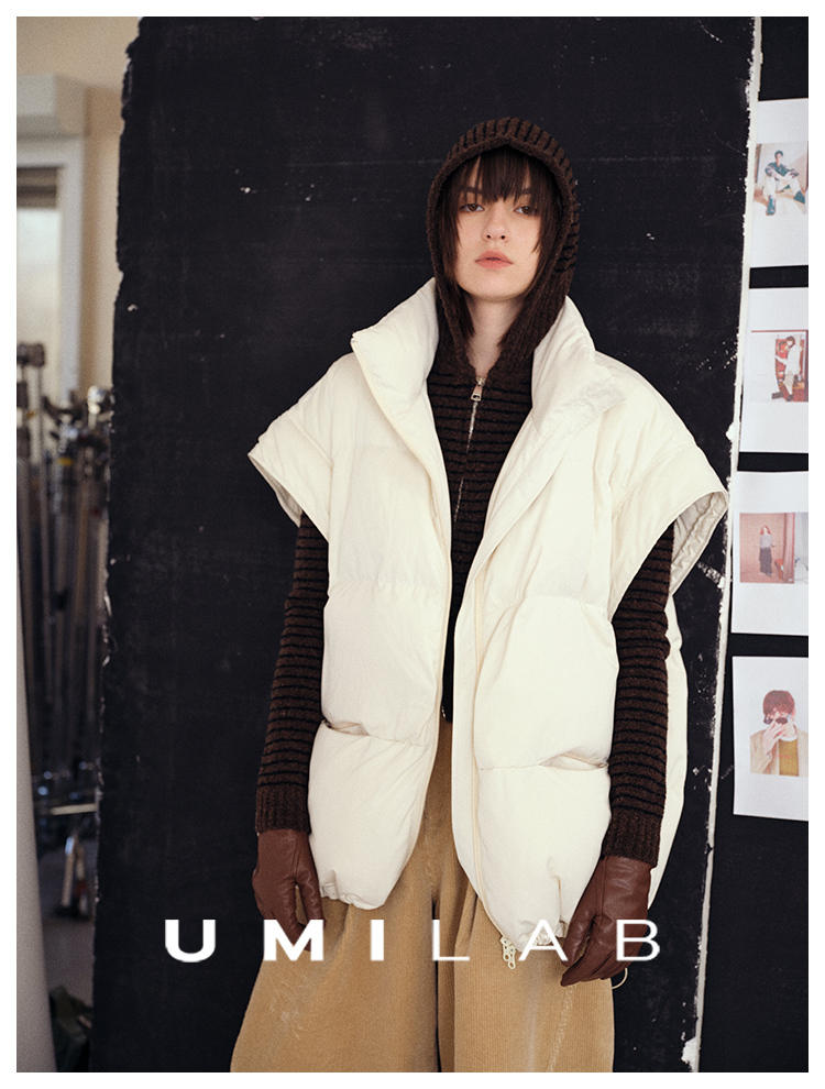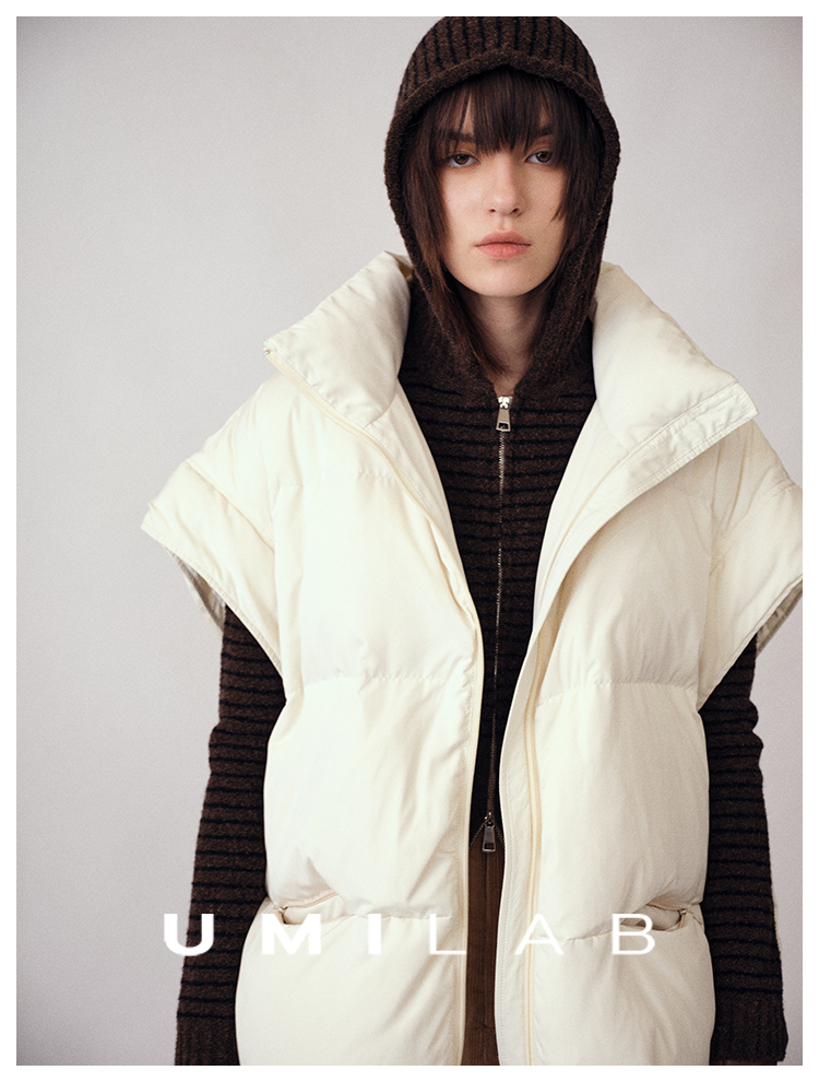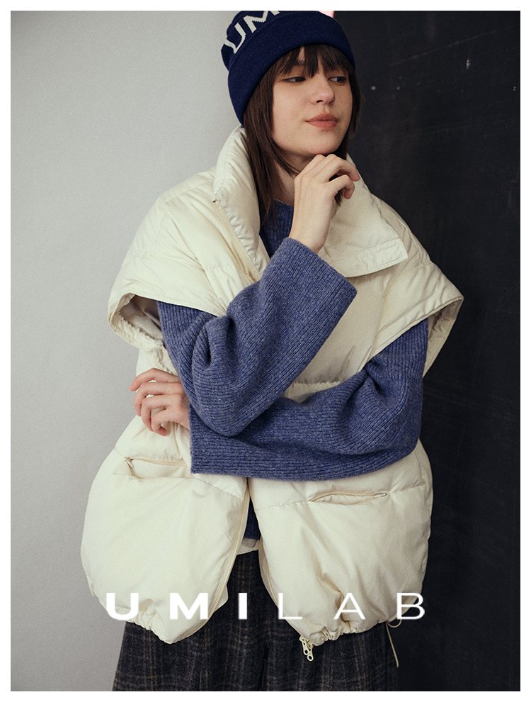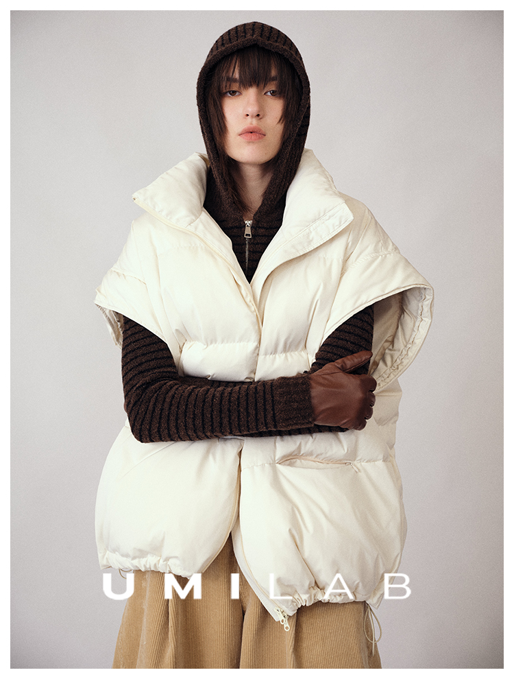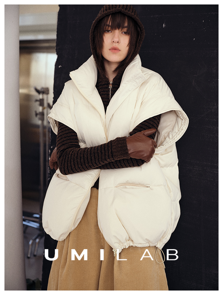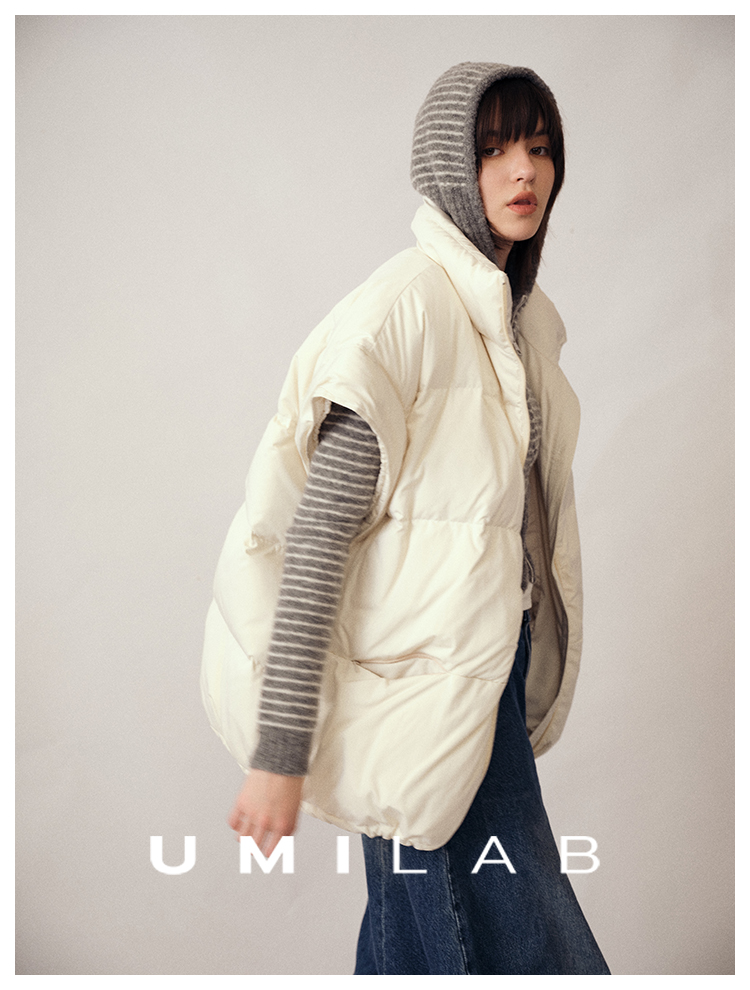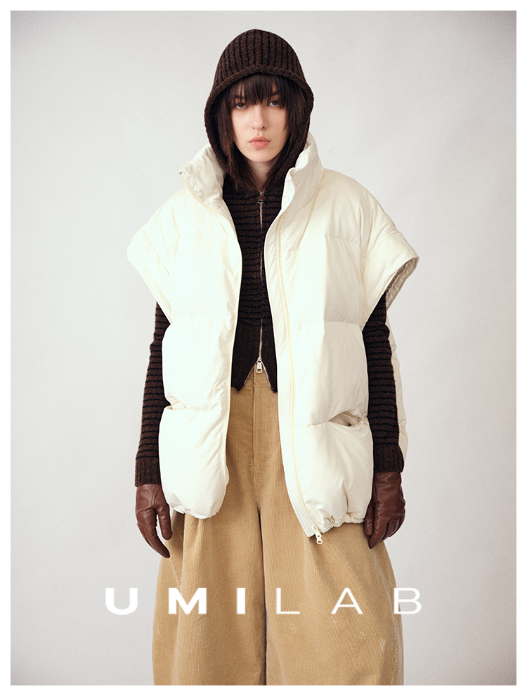 UMILAB|暖屿*磨砂绒感防水面料+95白鹅绒宽肩廓形羽绒马甲F366W