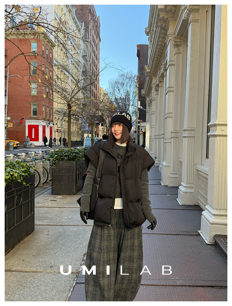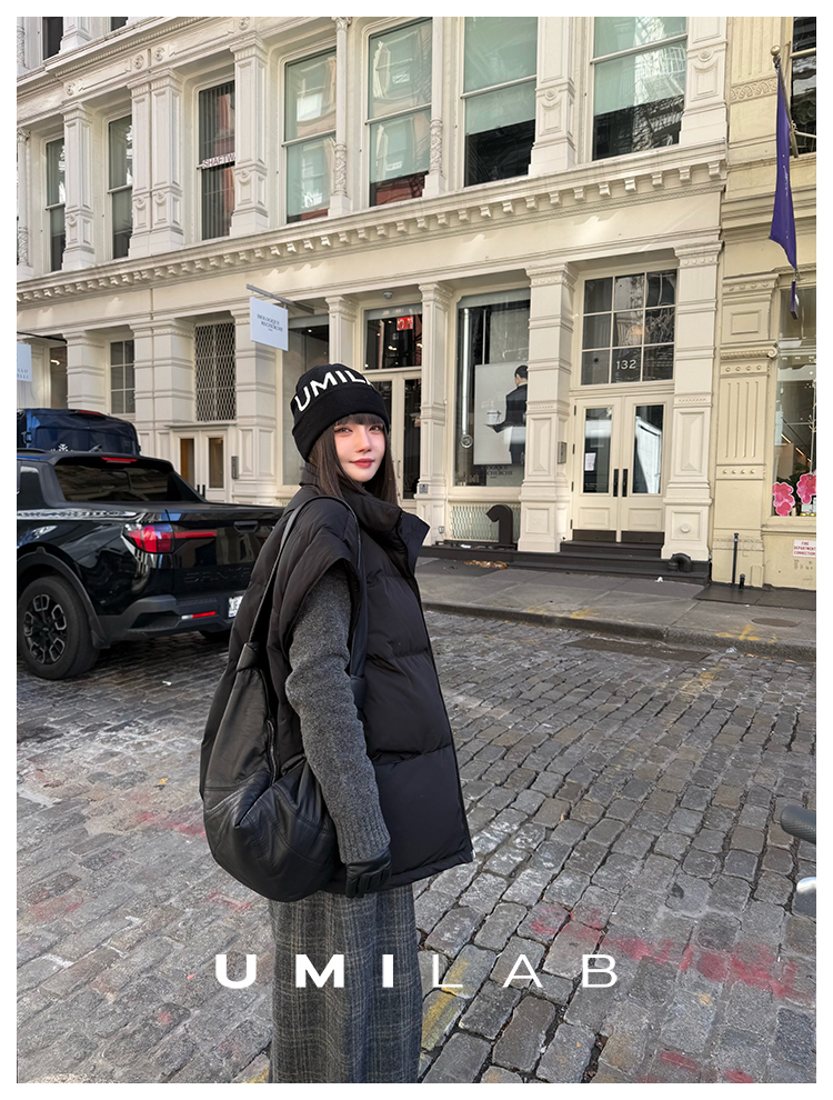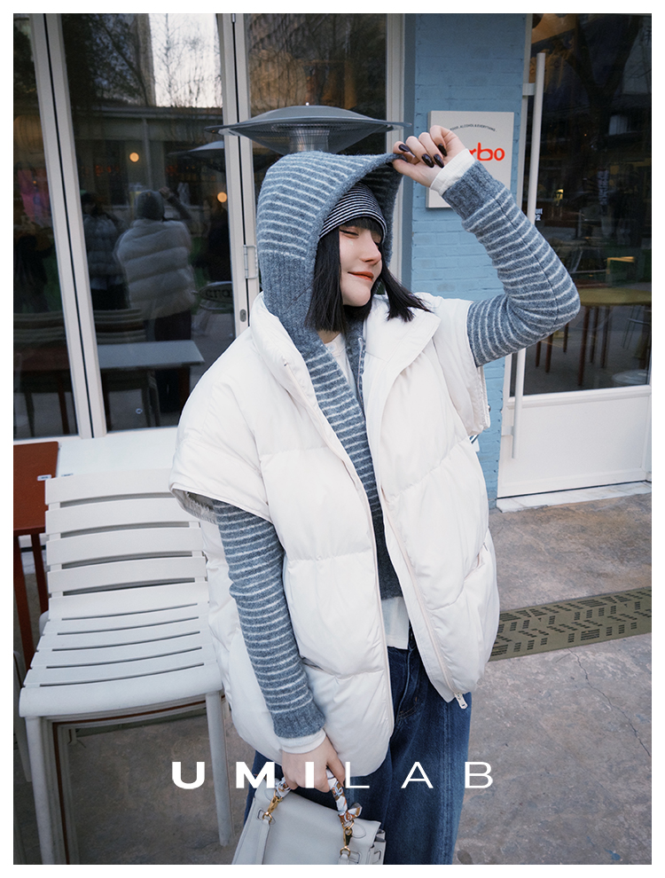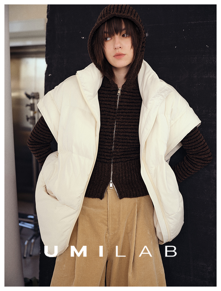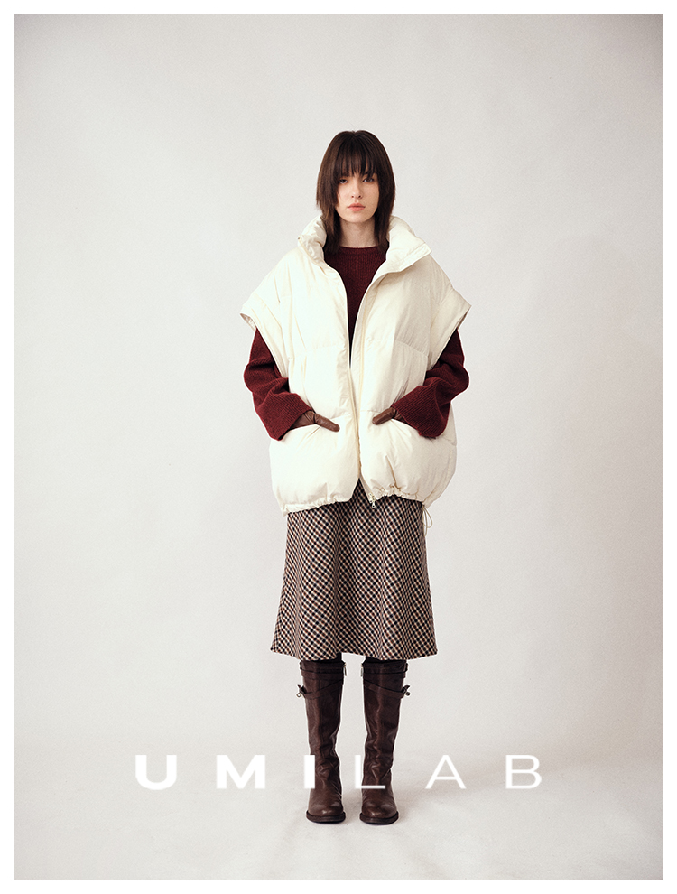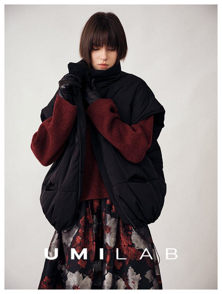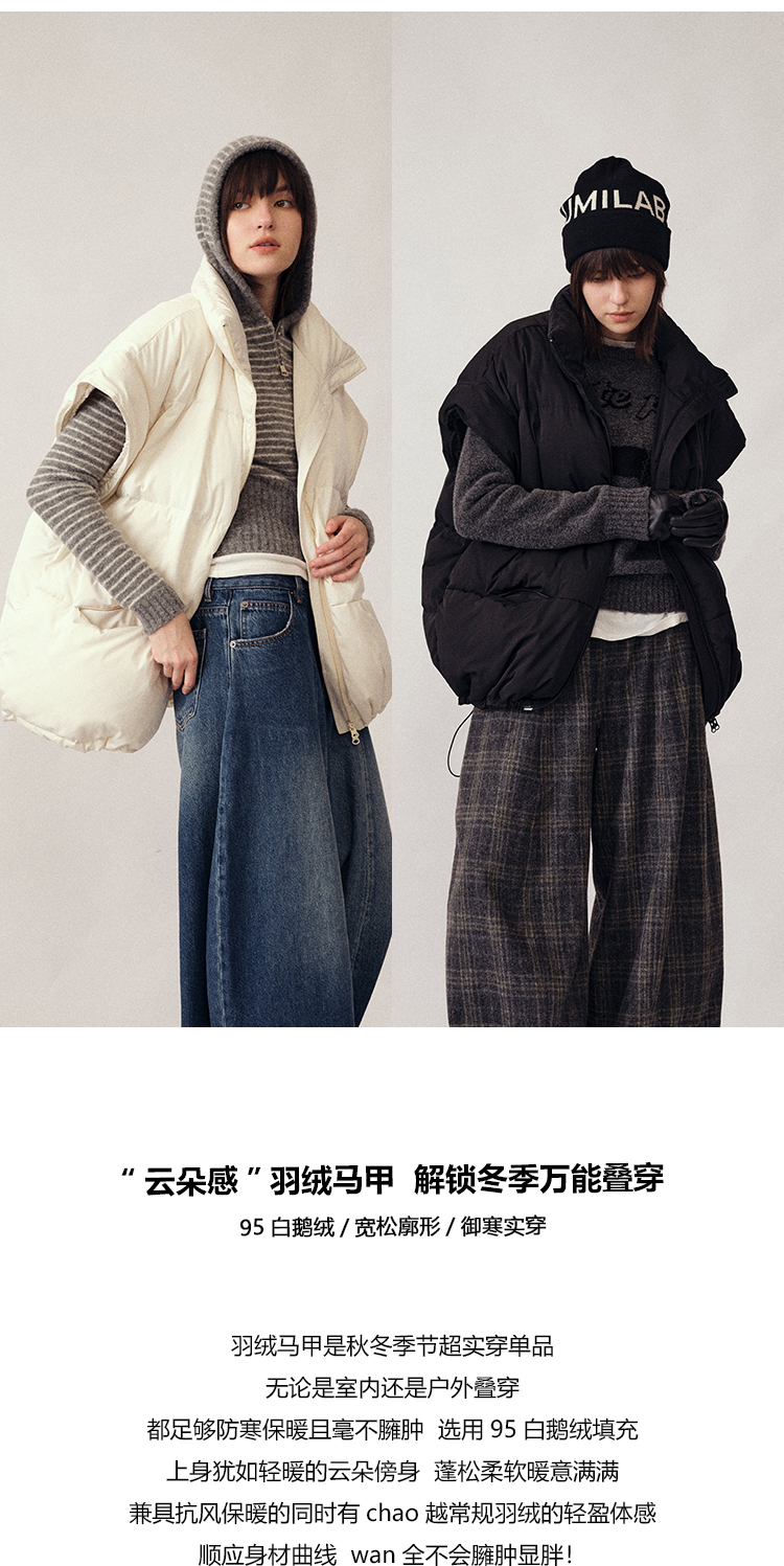 UMILAB|暖屿*磨砂绒感防水面料+95白鹅绒宽肩廓形羽绒马甲F366W