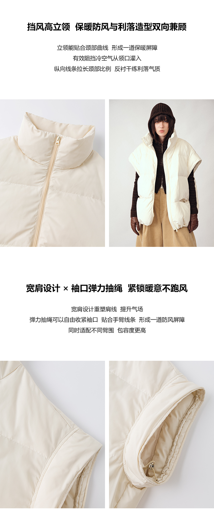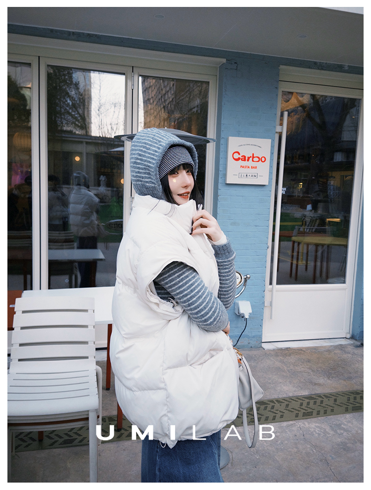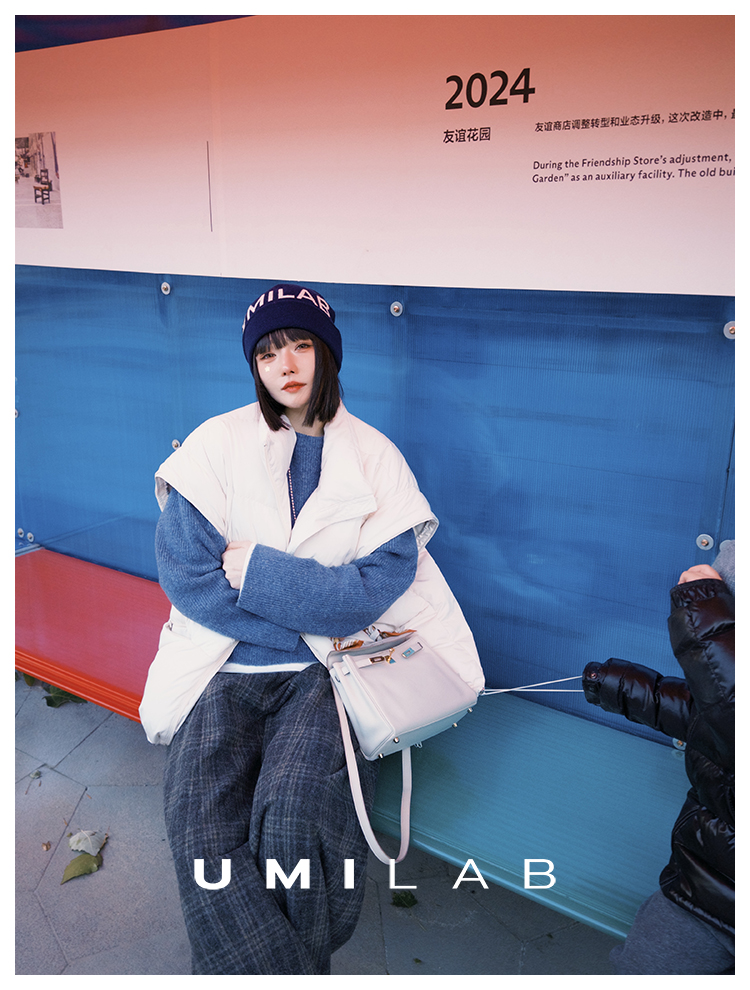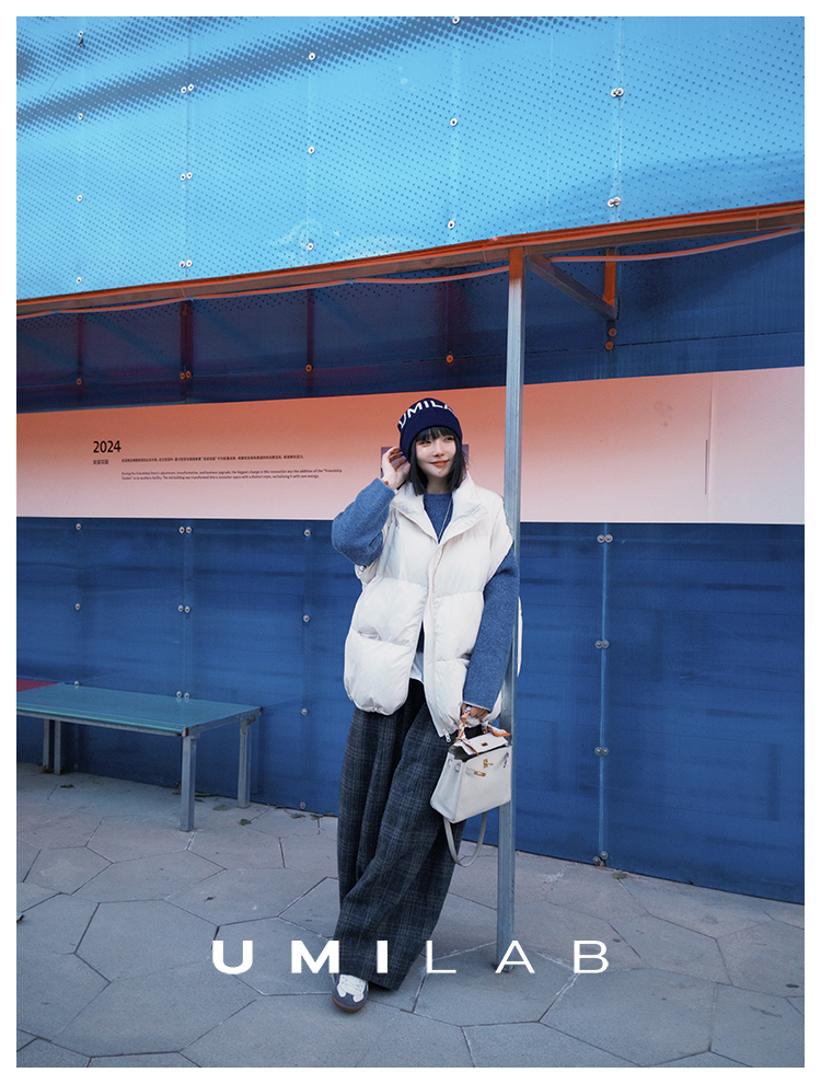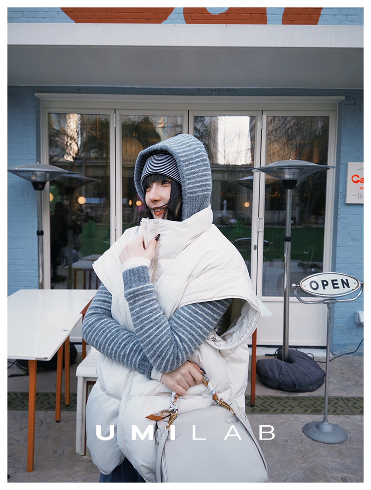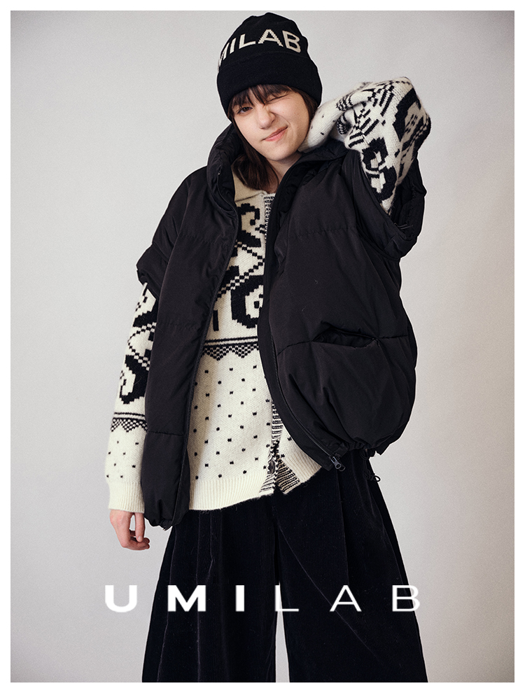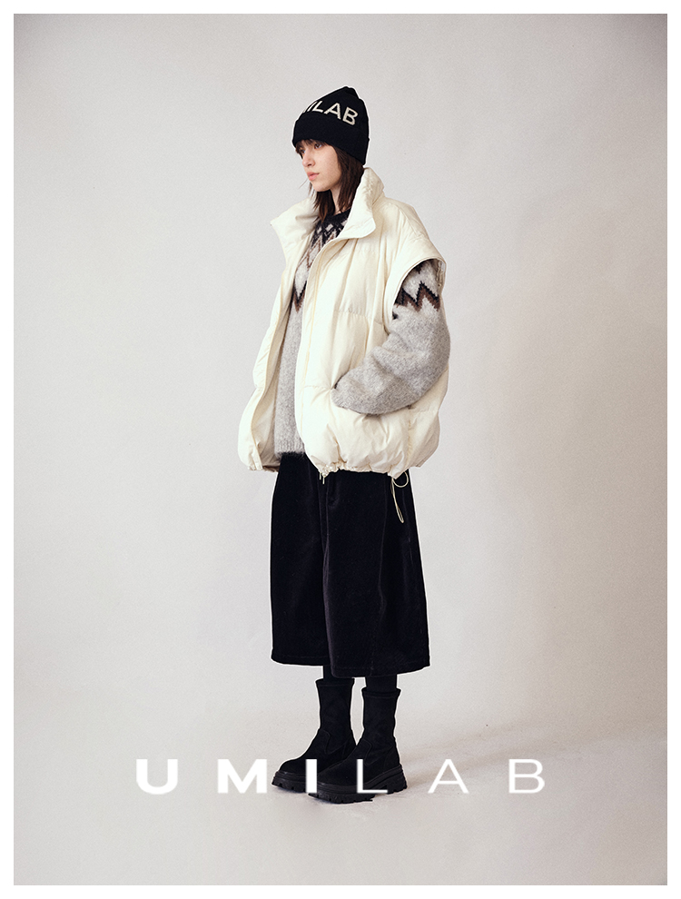 UMILAB|暖屿*磨砂绒感防水面料+95白鹅绒宽肩廓形羽绒马甲F366W