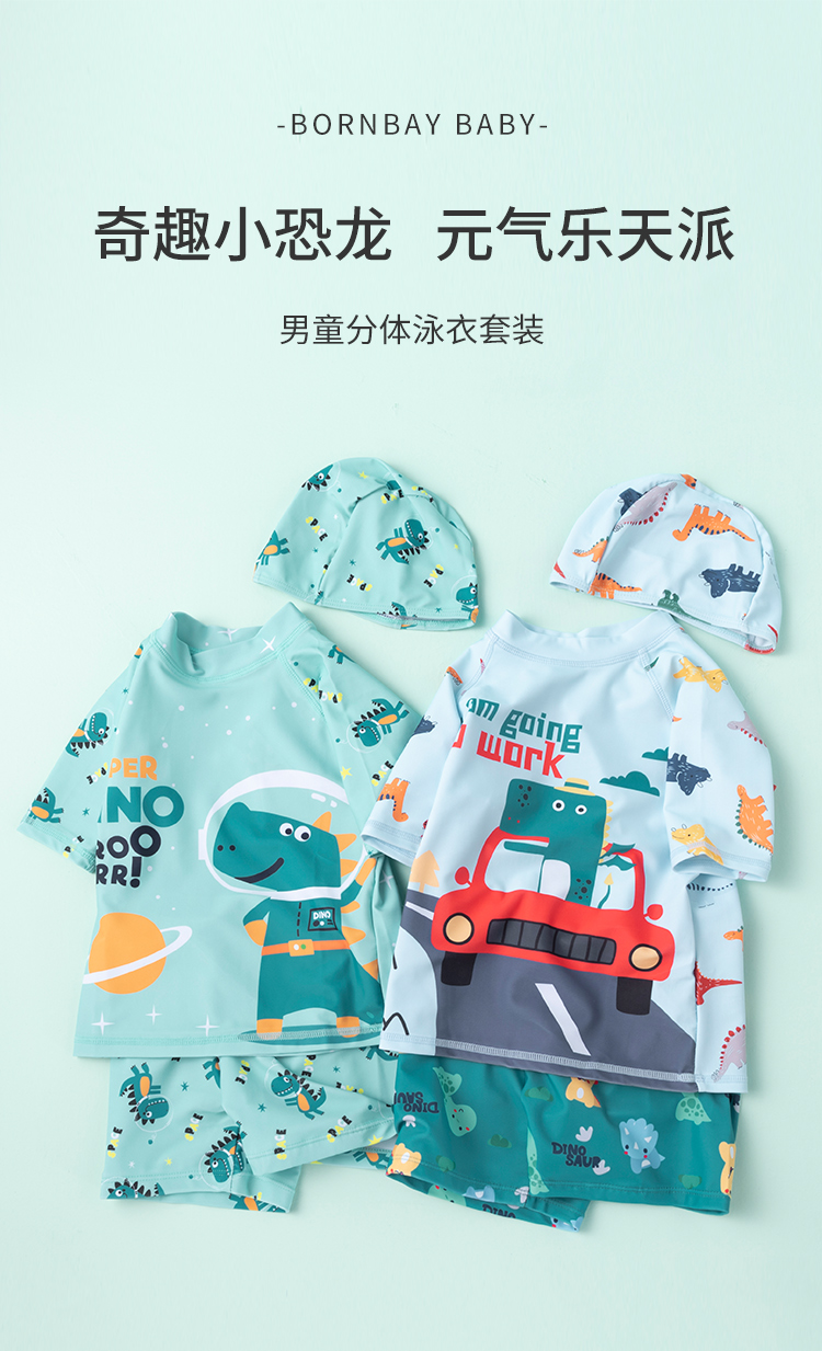 贝贝怡儿童泳衣男童泳裤夏季分体游泳衣小宝宝速干温泉游泳套装备212P2433
