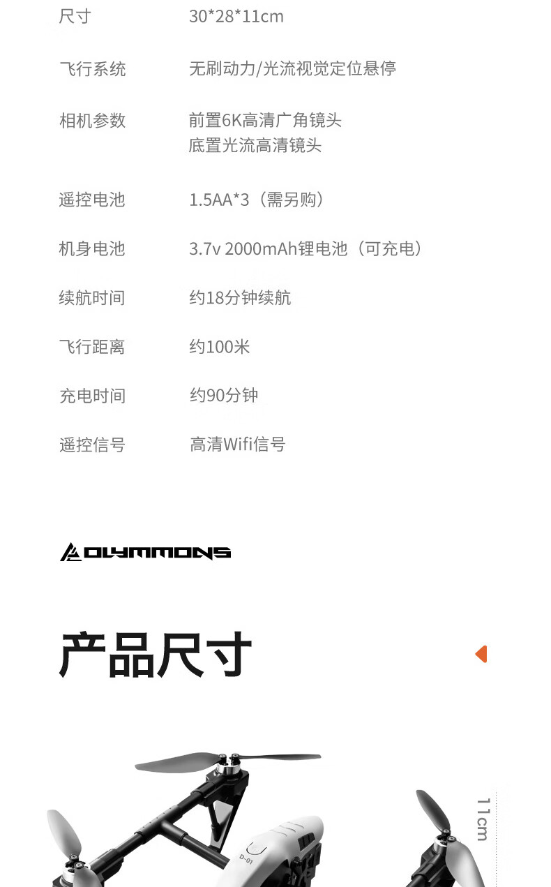 相机参数:前置6K高清广角镜头;底置光流高清镜头