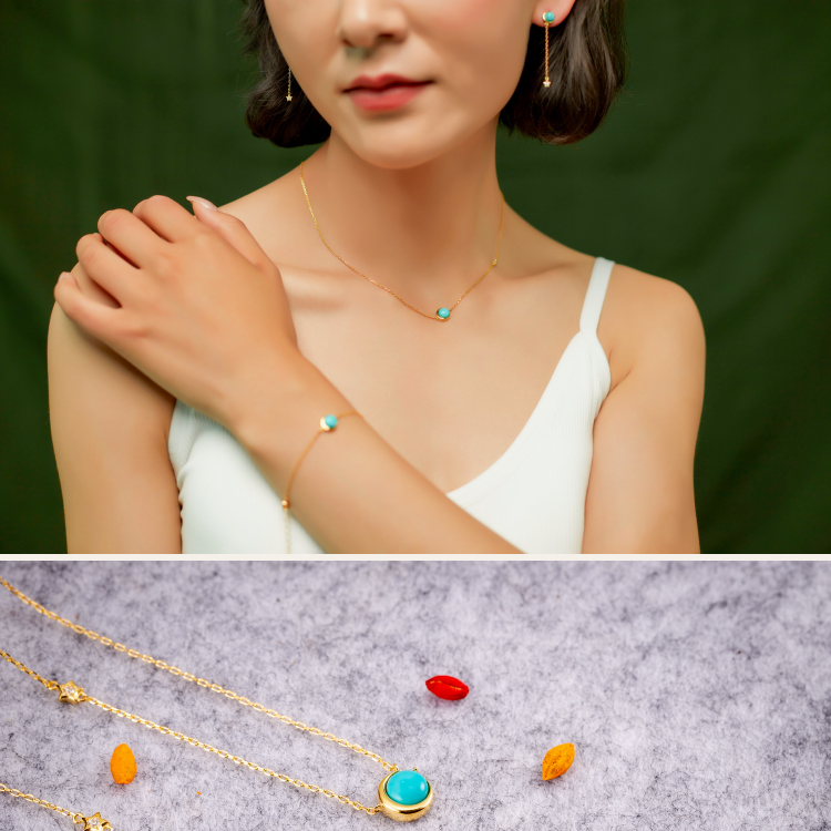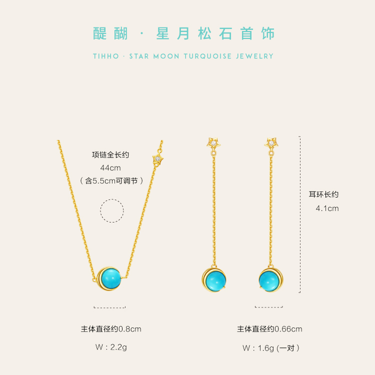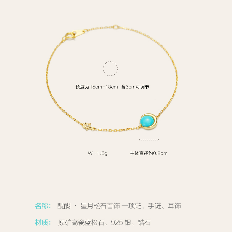 醍醐 原矿高瓷蓝松石 星月套装 项链 手链 耳饰