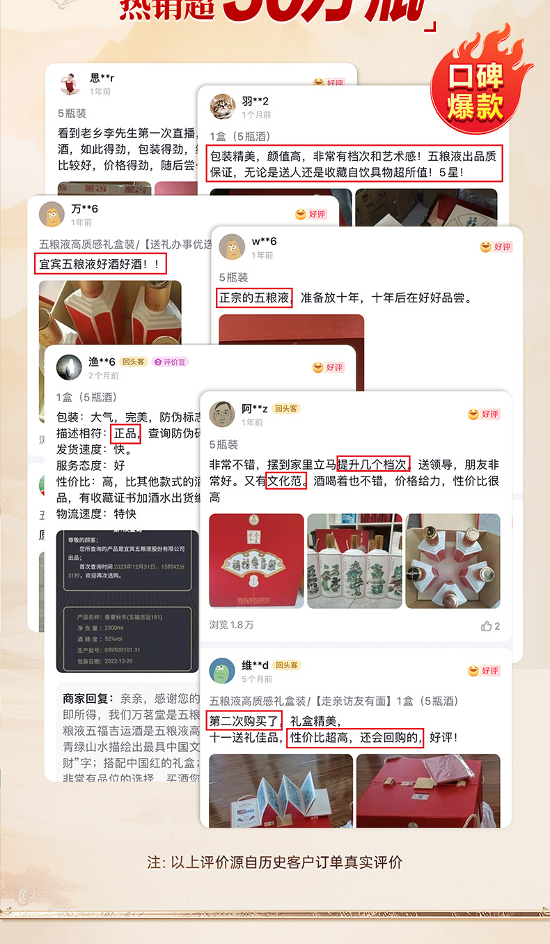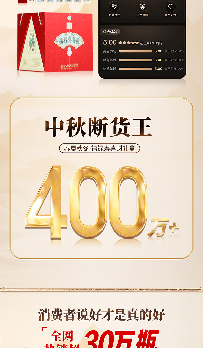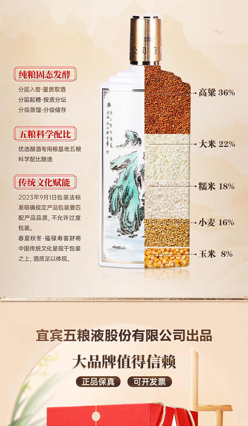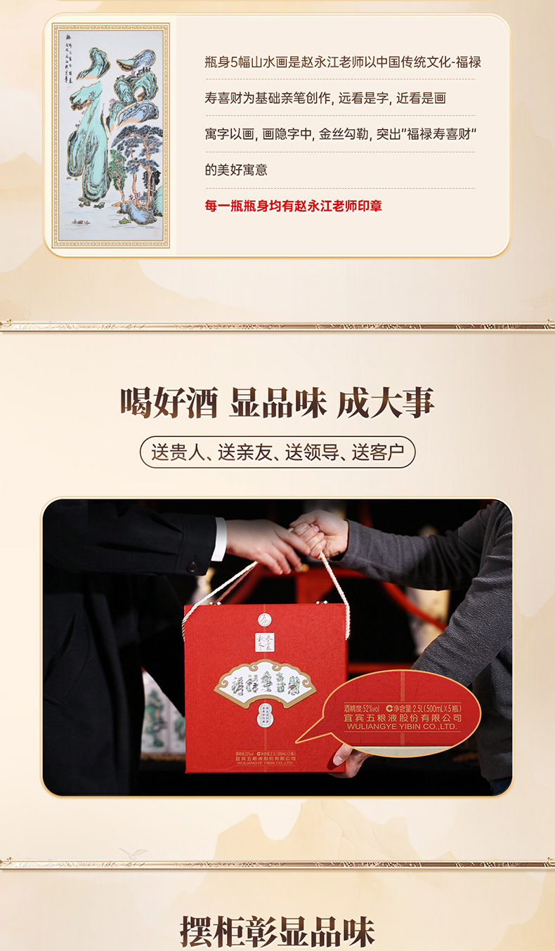 春夏秋冬五福吉运酒 五粮液股份出品52度白酒500ml*5瓶