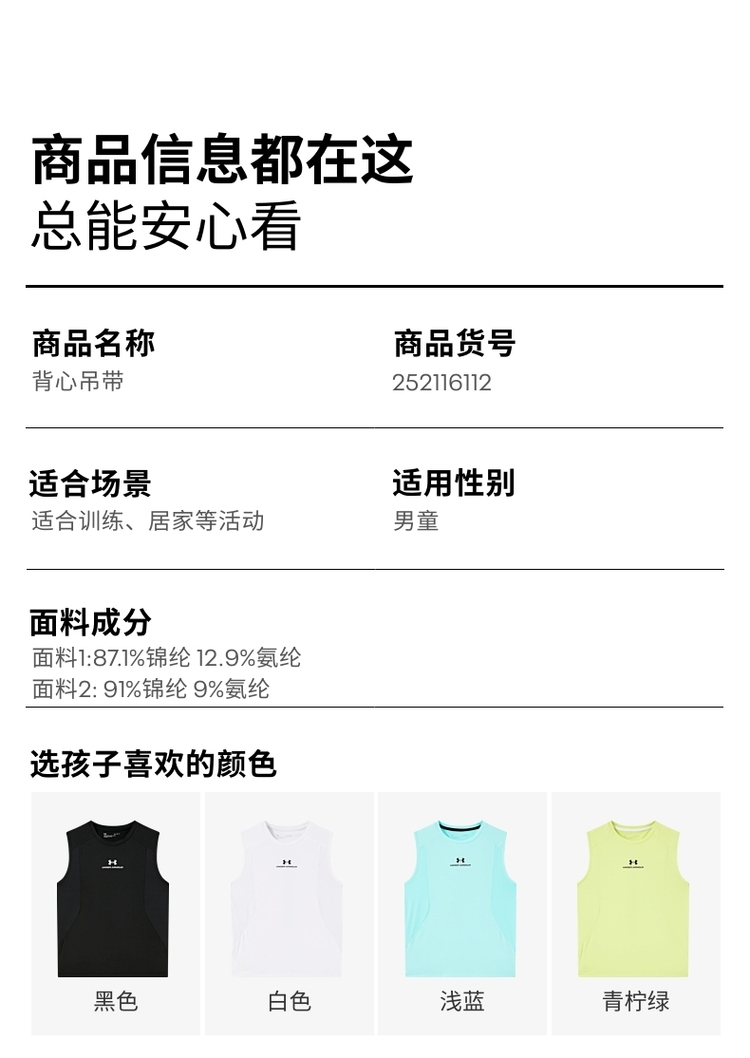 【12月-特惠福利】UnderArmour安德玛男女童短袖T恤/速干背心【合集】242201531/242101150/252116112/252320136/241201040