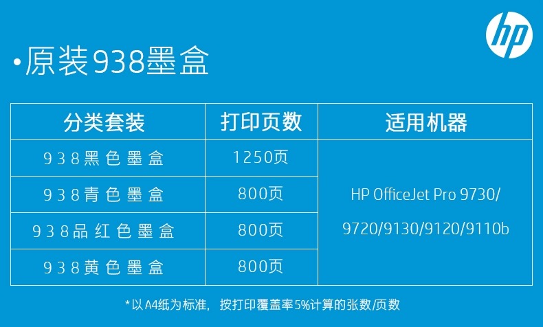 惠普(HP)原装938黑色墨盒/彩色墨盒多种规格可选 适用HP OfficeJet Pro 9110b 9120 9130 9720 9730打印机
