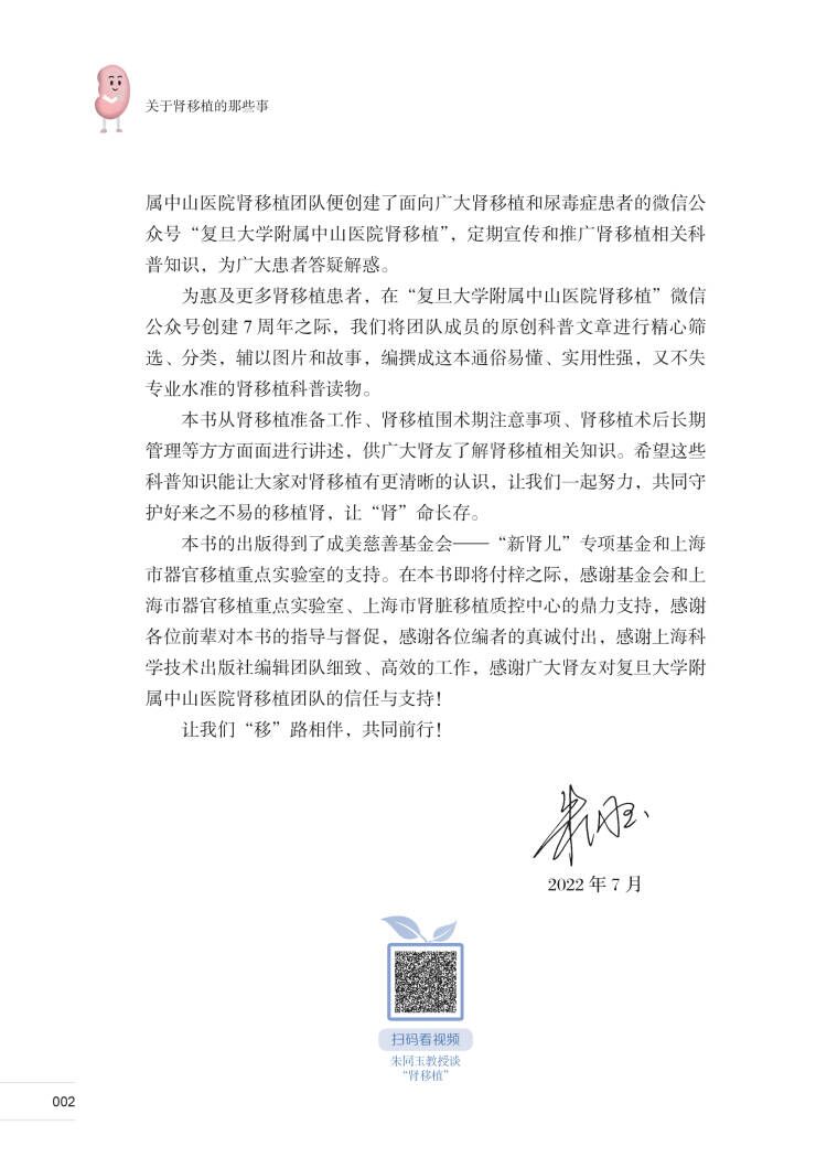 本书内附“肾移植科普”短视频,扫描书中二维码,即可观看