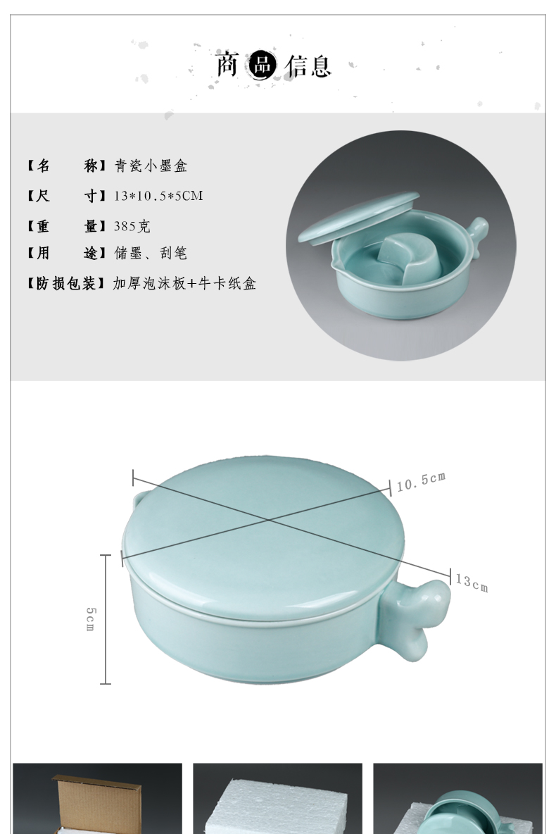 【金石印坊】青瓷小墨盒墨碟带盖内置刮墨桩小楷中楷墨盒