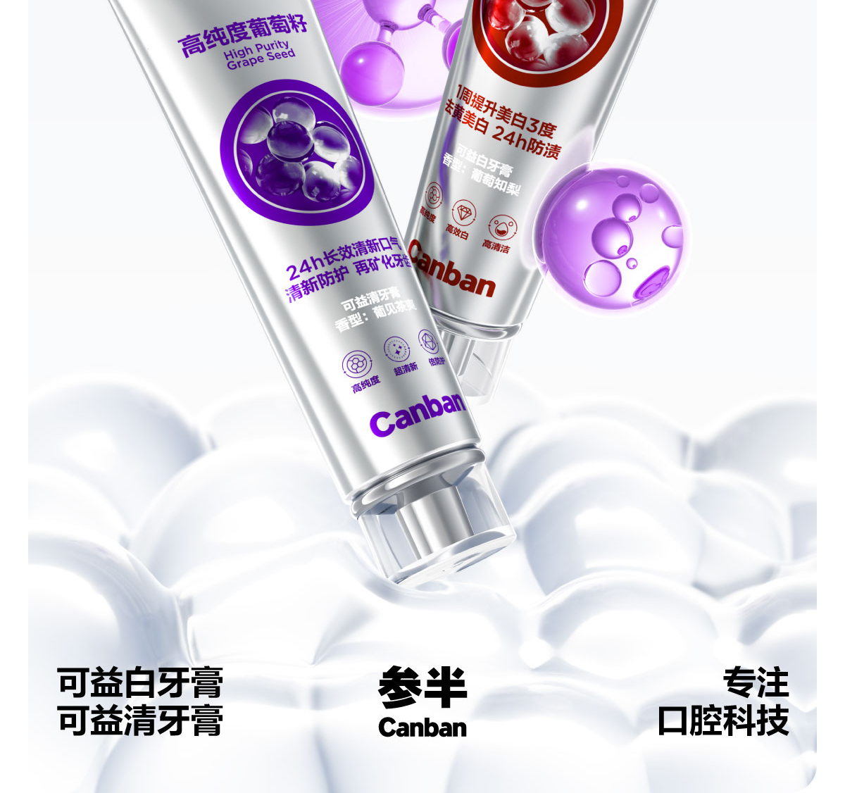 参半旗下产品已覆盖牙膏、漱口水、口腔爆珠、口腔喷雾等多个类目,为用户提供了精细化的口腔护理解决方案。