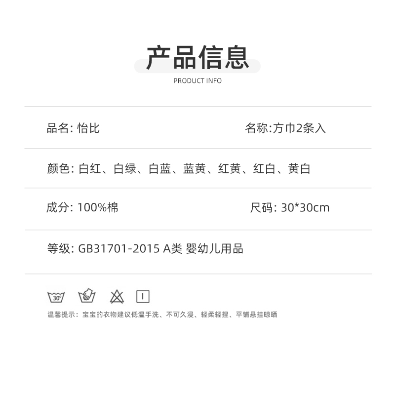 怡比奇妙生活方巾2条入HY24SPP002(多款可选)30*30cm
