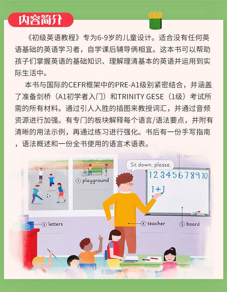 这门经过精心设计的英语课程假定学习者没有任何英语基础,所以对于家庭学习或教室同样有效。它让孩子们掌握英语的基础知识,帮助他们清晰,自信地使用和理解基本的英语。